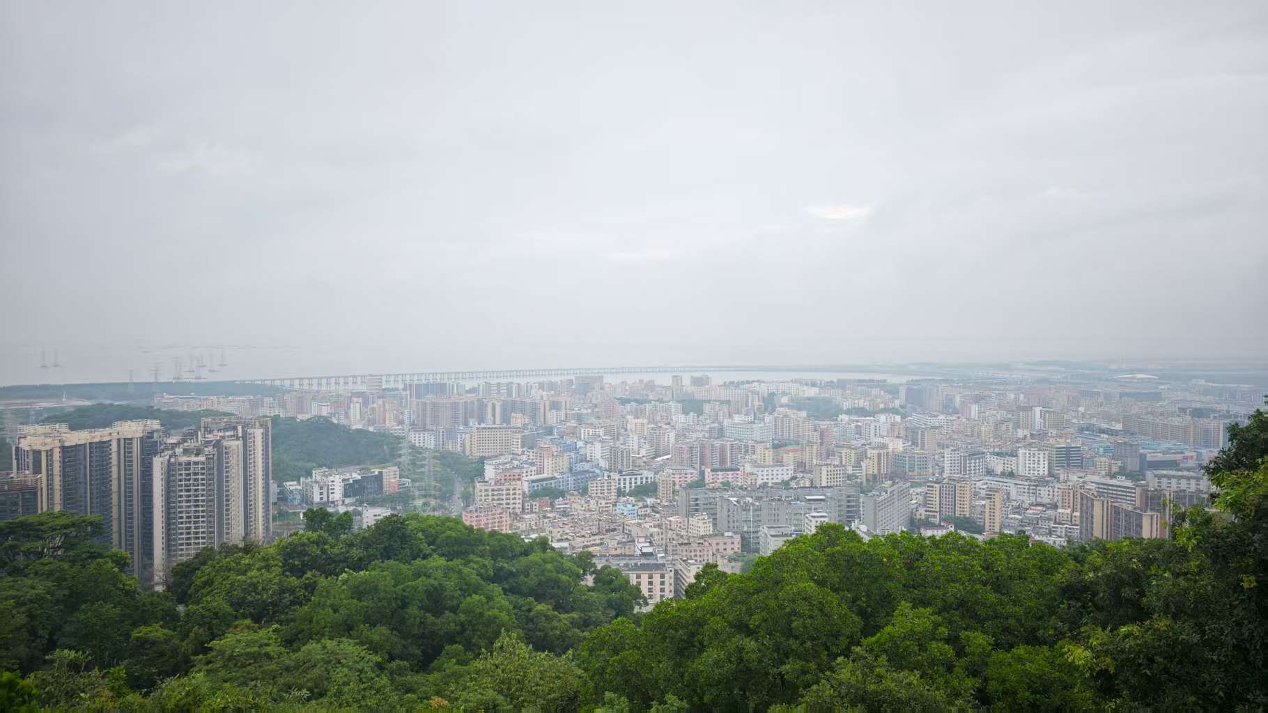 爬到山顶虽然只有一百多米的海拔,但依然能俯瞰城市风光。深圳的总面积约为上海的1/3,在上海实际上还能看到大片的空地,但深圳似乎很少,到处都是高楼及建筑