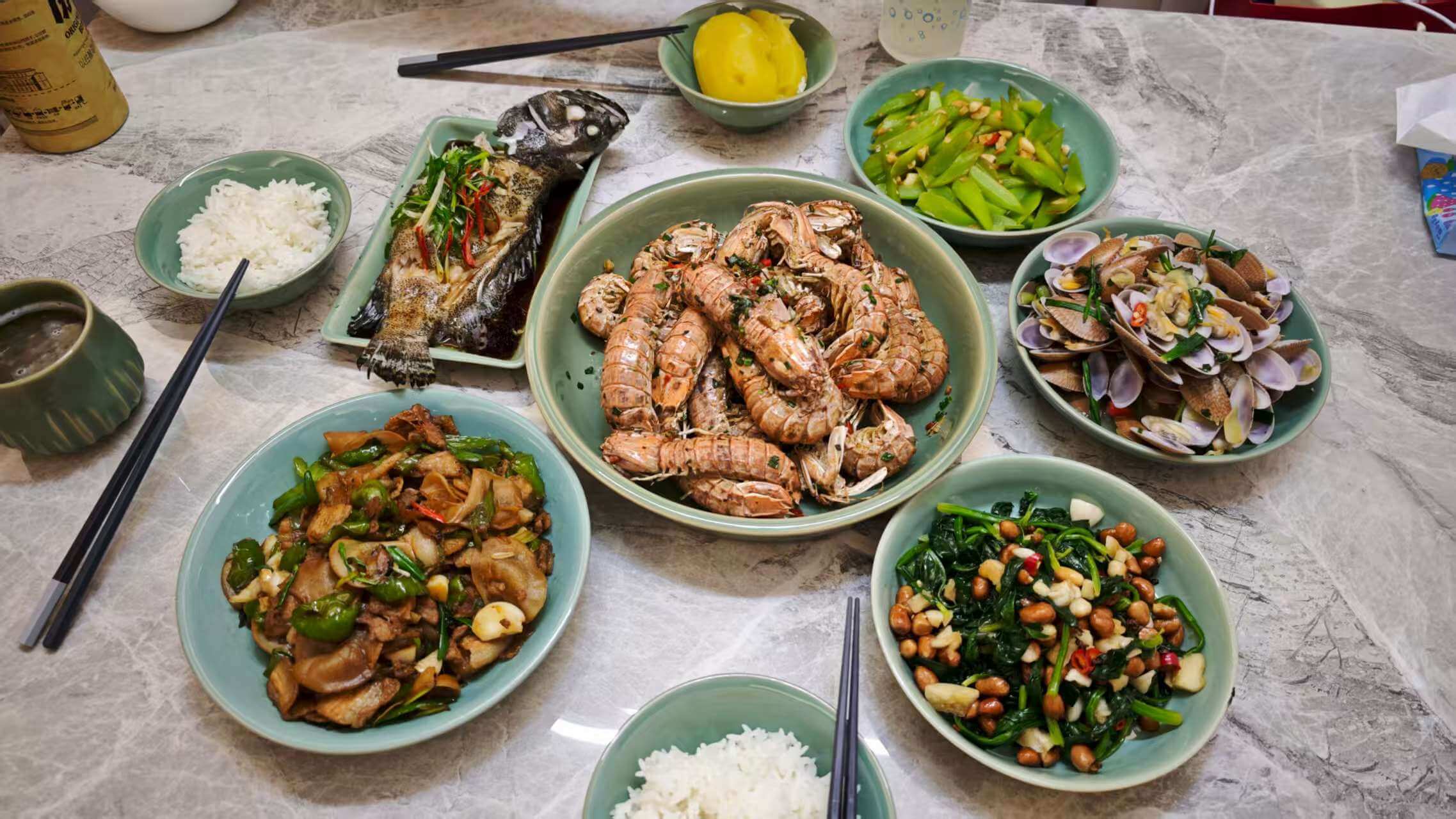 这两天朋友多次跟我夸赞妻子做饭好吃,我被说动了,原本计划早上吃完早茶就要离开的,又逗留了一天,辛苦这小两口了,晚上吃到了这么一桌丰盛美味的晚餐,每一个菜的味道都恰到好处,怪不得会被夸上天,我验证过了,名副其实