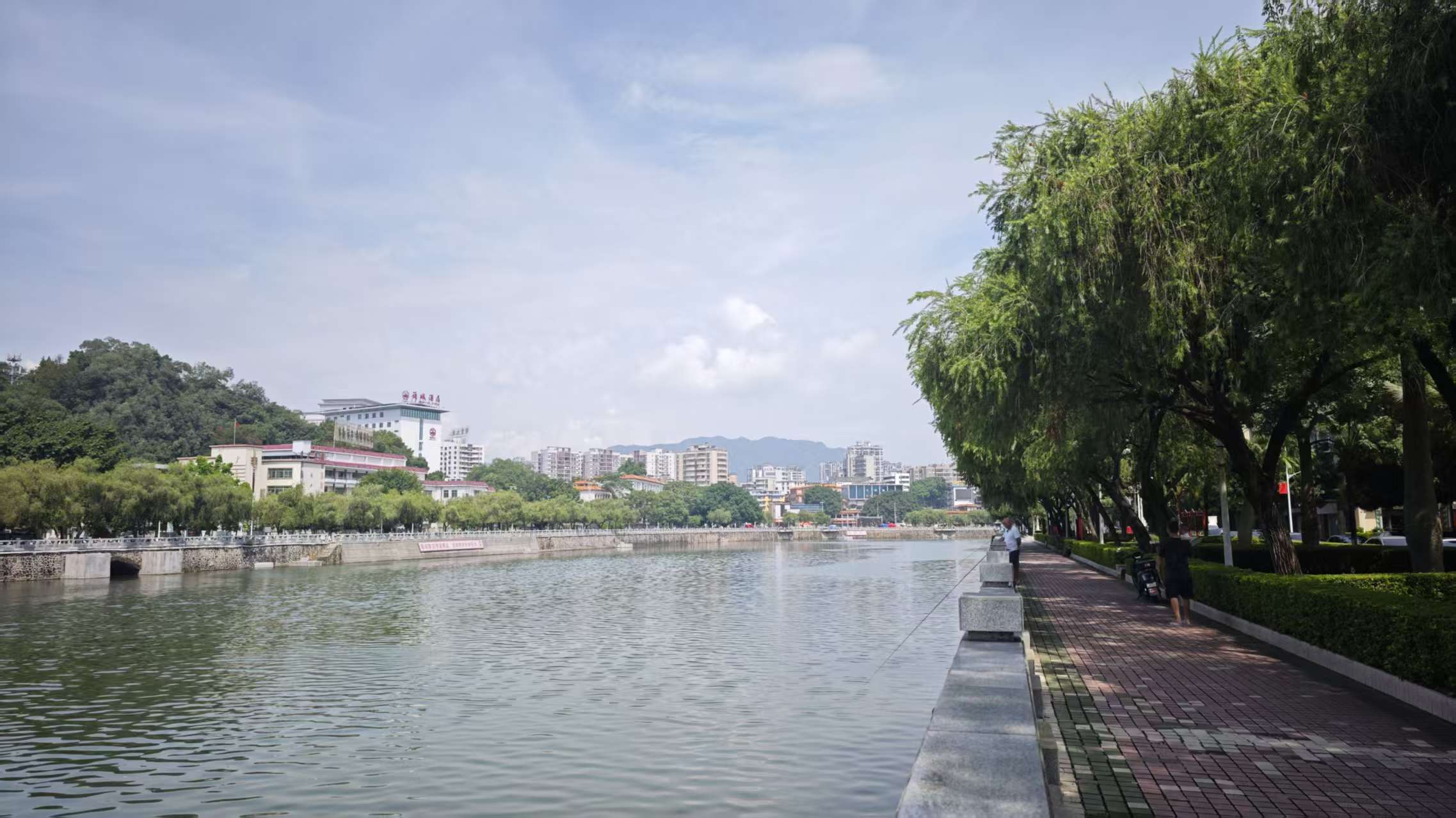 一路走到了浈江边上,两岸散步的人很多。从仁化县城出发一直到南雄市区这一路,导航上都能看到浈江的身影,基本是沿着浈江的流向一路过来的,现在终于站在江边了