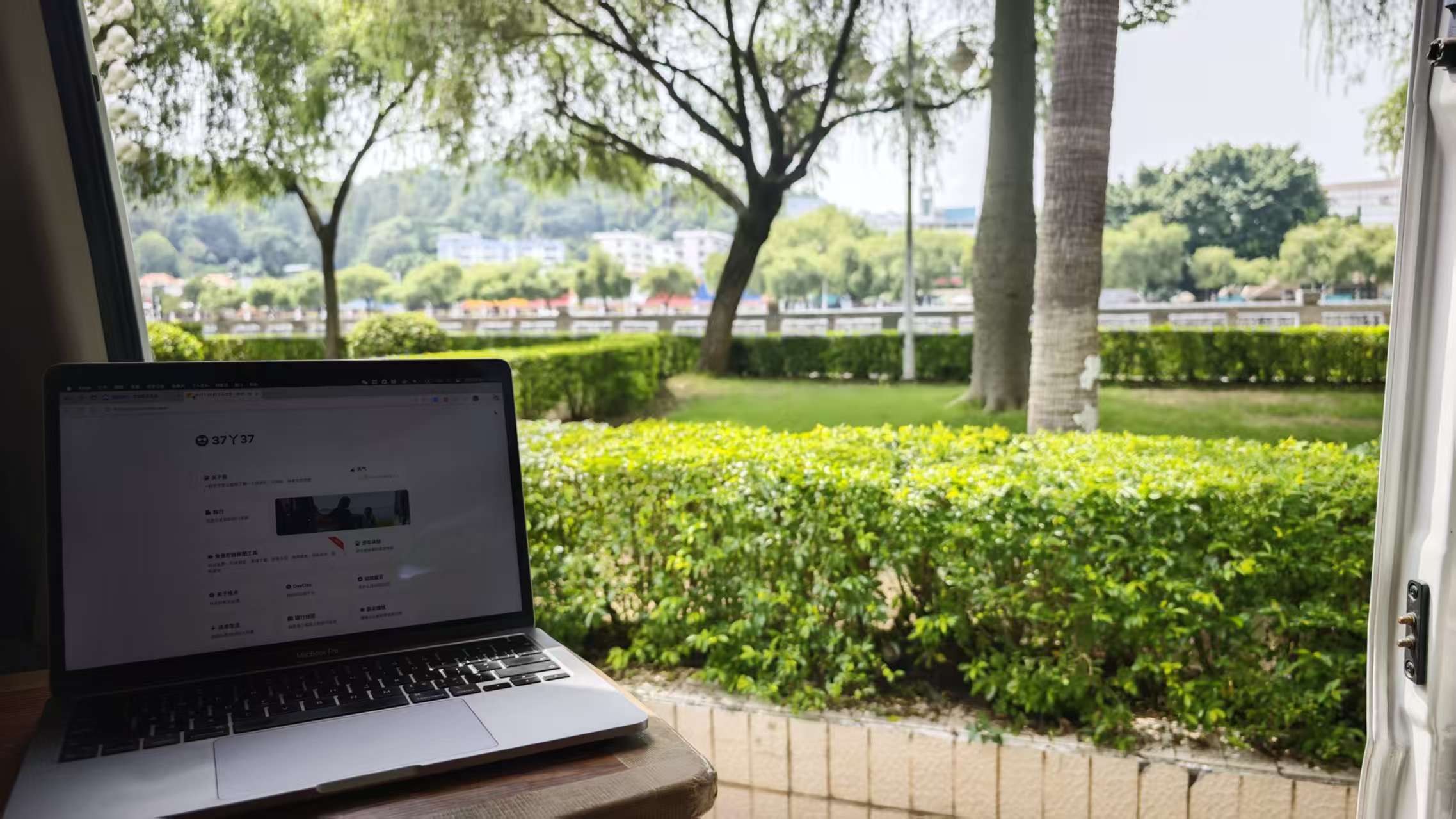 手握咖啡,回到锦江边,锦江东岸的路旁有一排的免费停车位,找个视野好的停下来,欣赏下锦江风景,顺便整理完成昨天丹霞山的游记