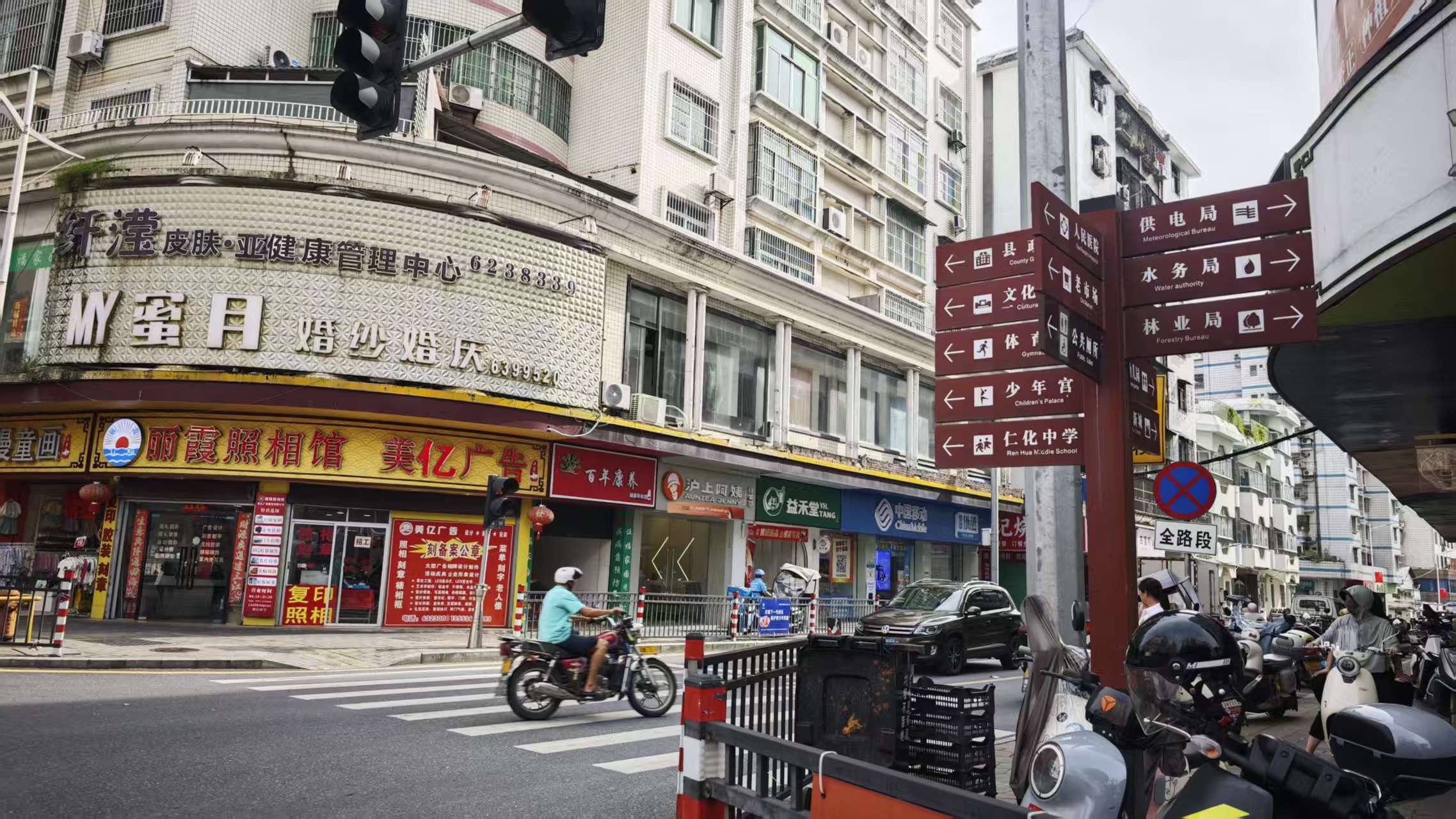 仁化县是韶关市下辖县,地处南岭山脉南麓,广东省北部,是粤、湘、赣三省交接地,我们昨天去的丹霞山就在仁化县境内。仁化县历史悠久,南朝齐年间,始建仁化县,距今已有1500多年。县城建在半山上,需要上下爬坡,但还算平整,路也好走,路旁的指示牌指出了核心地点的方向,这个必须好评