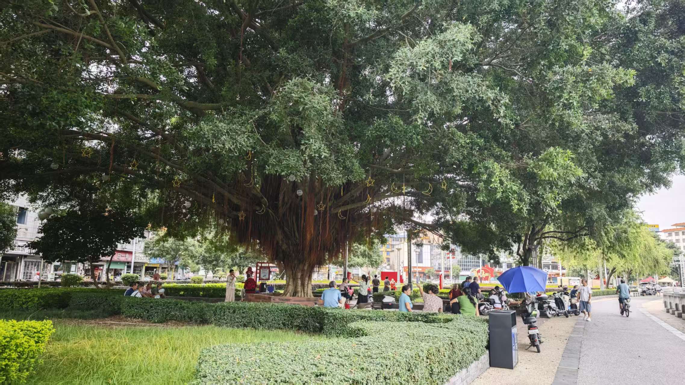 县城不大,电瓶车大概一个小时左右可以逛一遍,县城人挺多,尤其是能看到很多的年轻人,感觉就很有活力。锦江两岸是当地人最爱的地方,尤其西岸县政府门前那片公园,锦江在这里拐个弯,两棵巨大榕树一盖,底下一群人打牌、喝茶、聊天