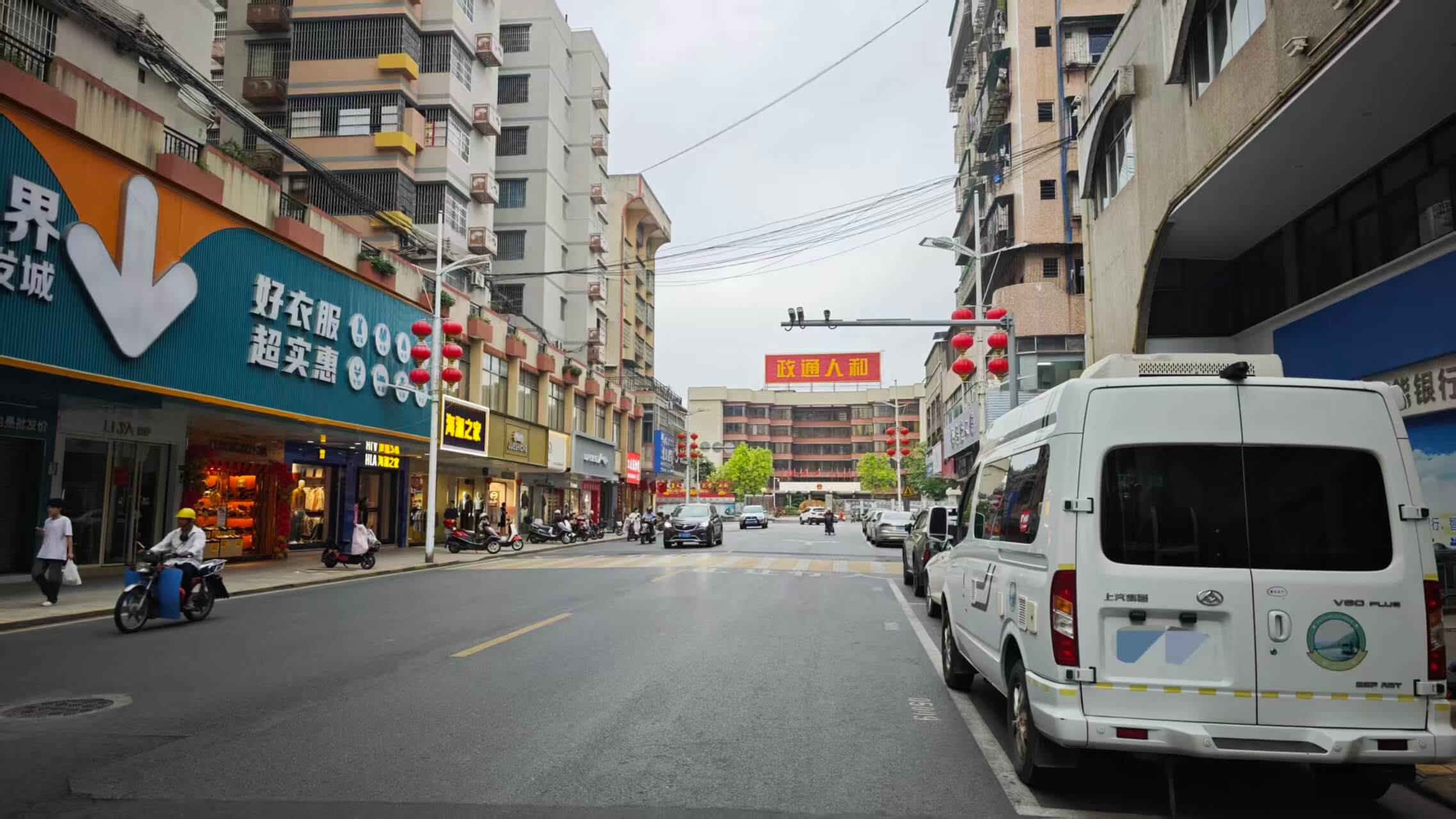 逛完仁化县城,继续出发,下一站珠玑巷,珠玑巷是中华民族拓展南疆的中转地,也是数千万广府人及众多海外华侨的发祥地,距离80公里,大概需要一个半小时。在接近珠玑巷时发现路过南雄市区,已经傍晚,就先去市区找点美食解决晚餐。导航南雄市的默认终点是市政府,就停车在它对面的免费停车位上,一眼就看到市政府楼顶的「政通人和」四个大字,气场很足