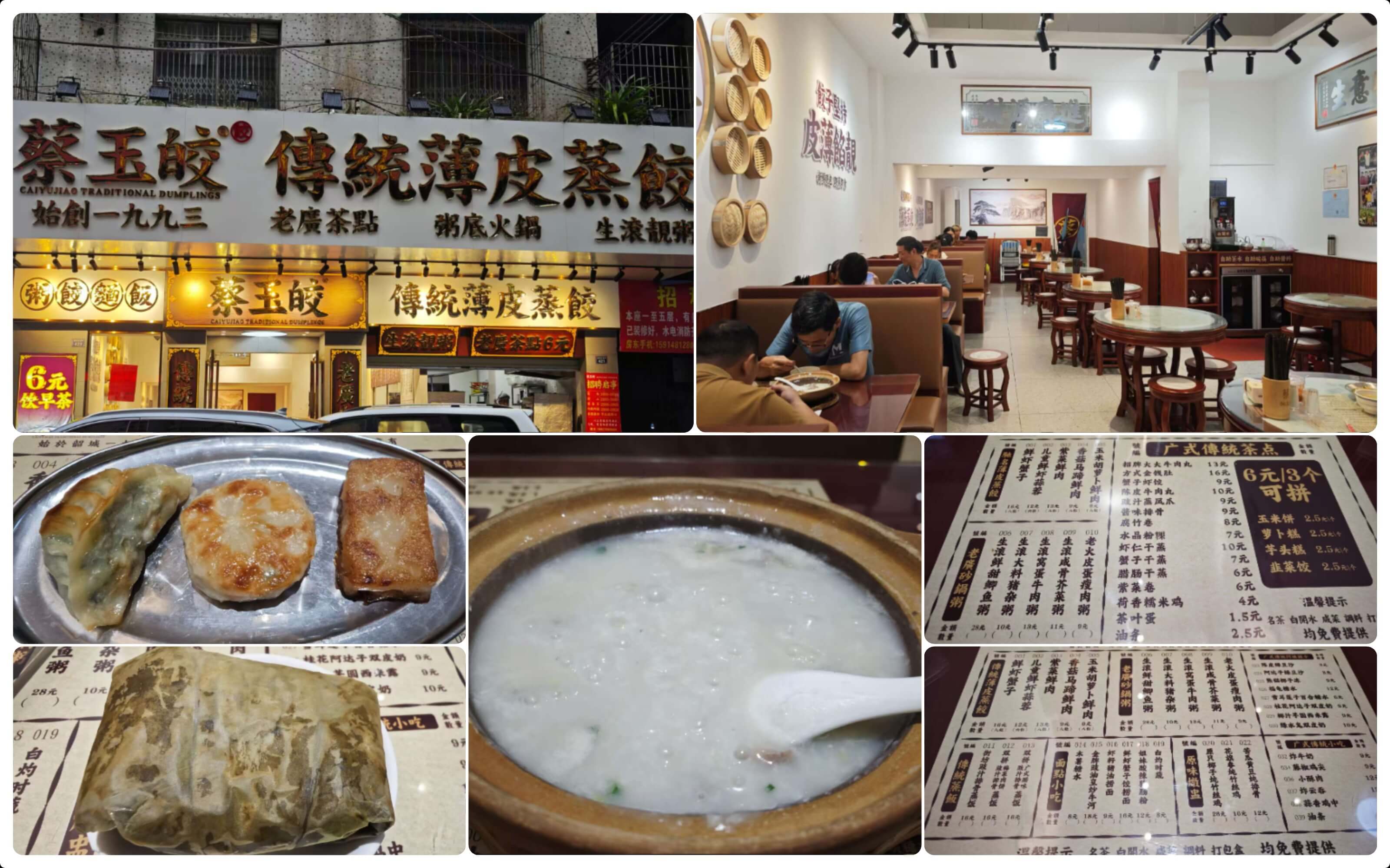 正赶上附近南雄中学放学,街上全是穿黄色校服的学生,成群结队,青春洋溢。去吃了推荐很多的蔡玉饺,这家店似乎是连锁,我在韶关市区的东关街就有看到,没想到在这又遇到了,点了蒸饺、糯米鸡和粥,一共20块钱,吃的饱饱的,味道还不错