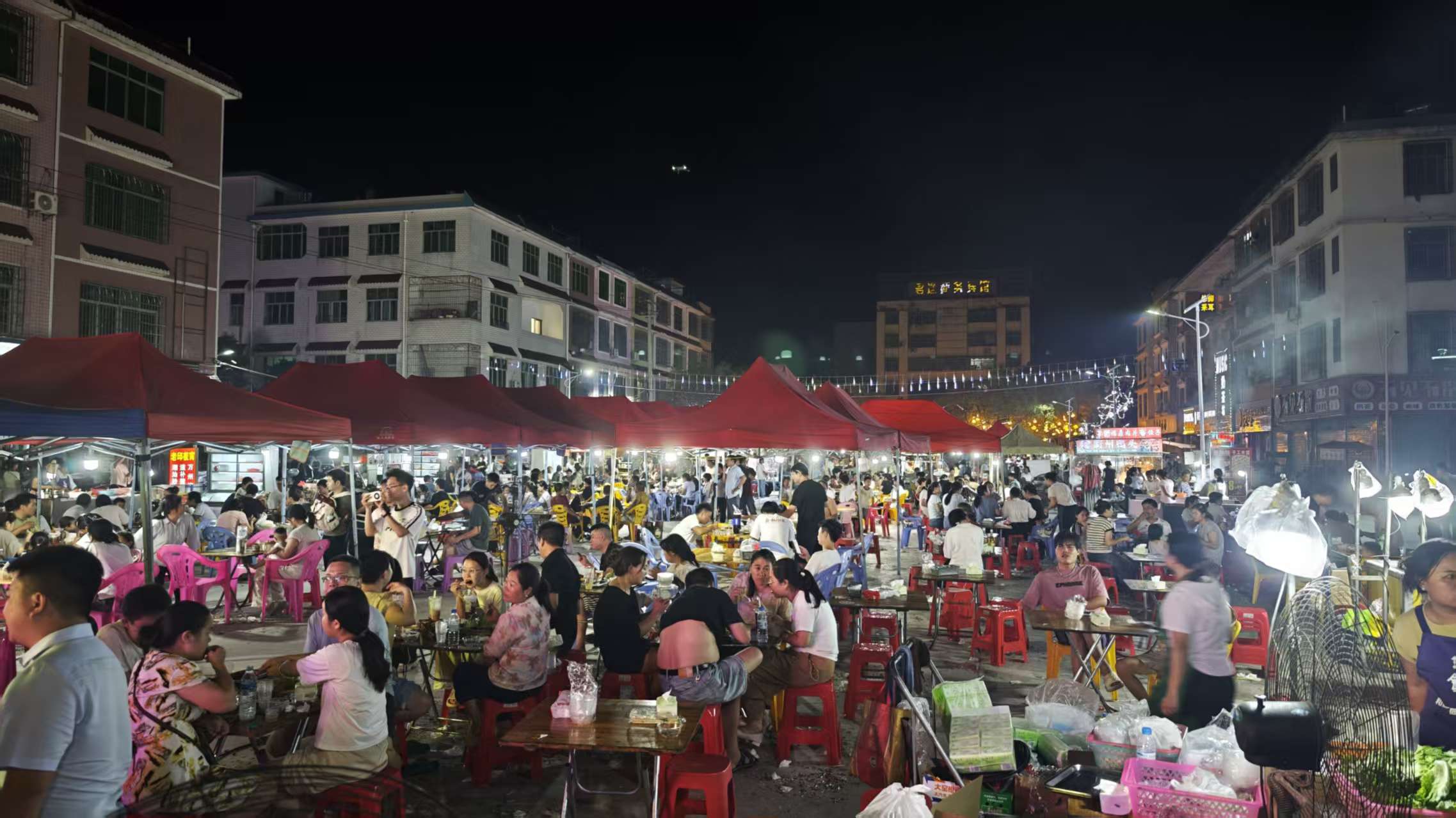 吃饱喝足,真的要离开了,路过池江镇,又被路边的夜市所吸引,停车下去凑个热闹,我仔细的看了看地图,这里真的是个镇,这规模超乎想象,几乎像是全镇的人都来了,还请了歌手驻唱,热闹得让人不忍离开