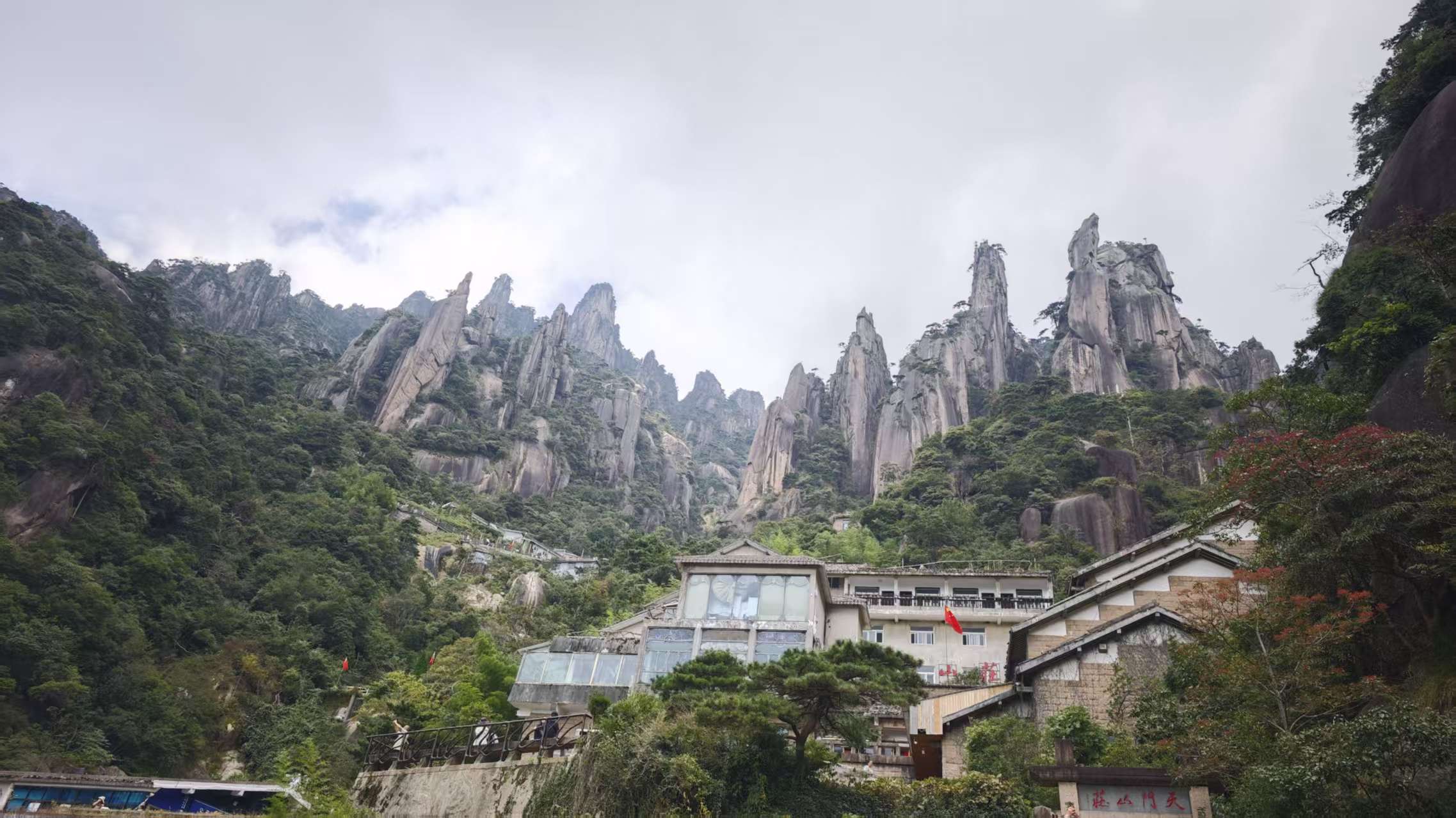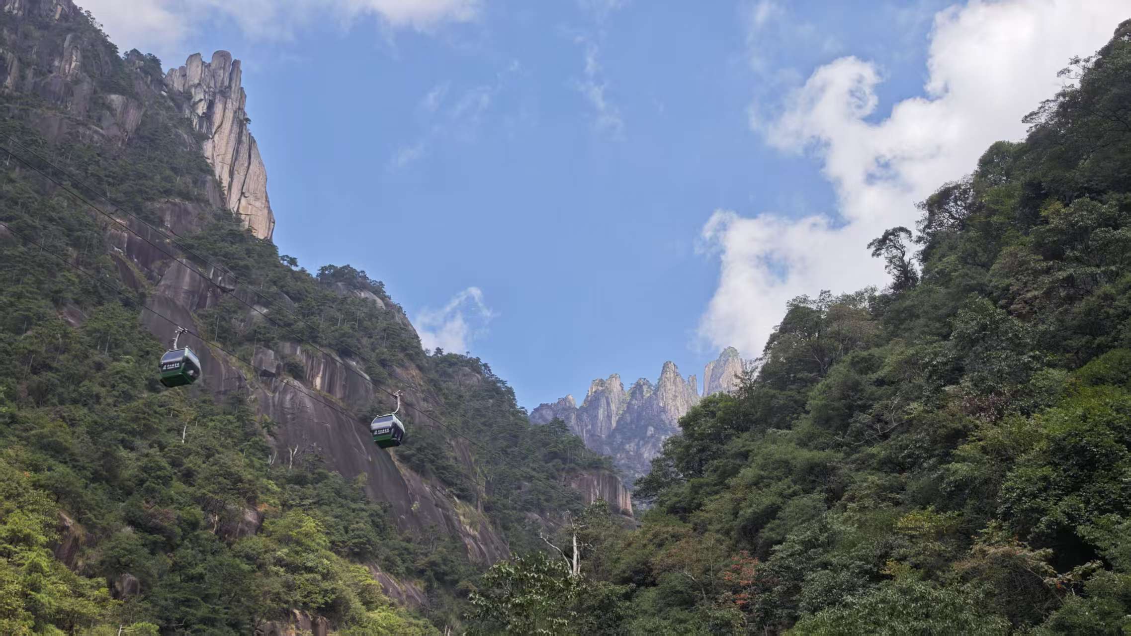 三清山现为世界自然遗产、世界地质公园、国家级风景名胜区、国家5A级旅游景区,风景特别好,有「揽胜遍五岳,绝景在三清」的美誉。不过徒步上山的这一路倒是风景一般,花了两个小时的时间终于爬到了索道上站