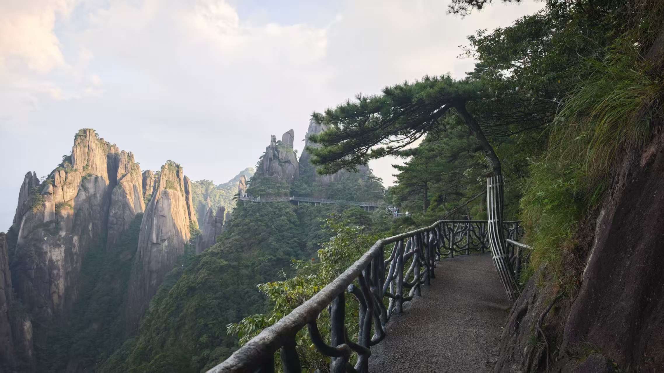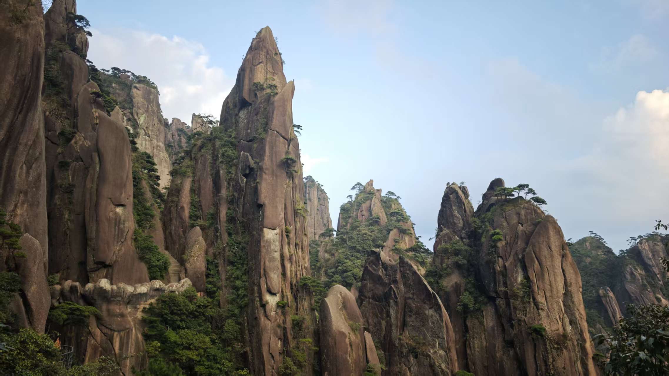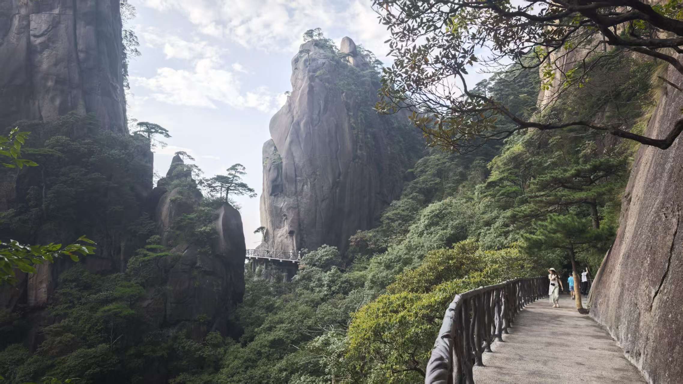 阳光海岸的地势要比西海岸更为开阔,景色多样,可以近距离观赏奇峰异石和松林景观,走在悬崖栈道上能切身感受到「三清天下秀,奇峰立云端」并非是虚言