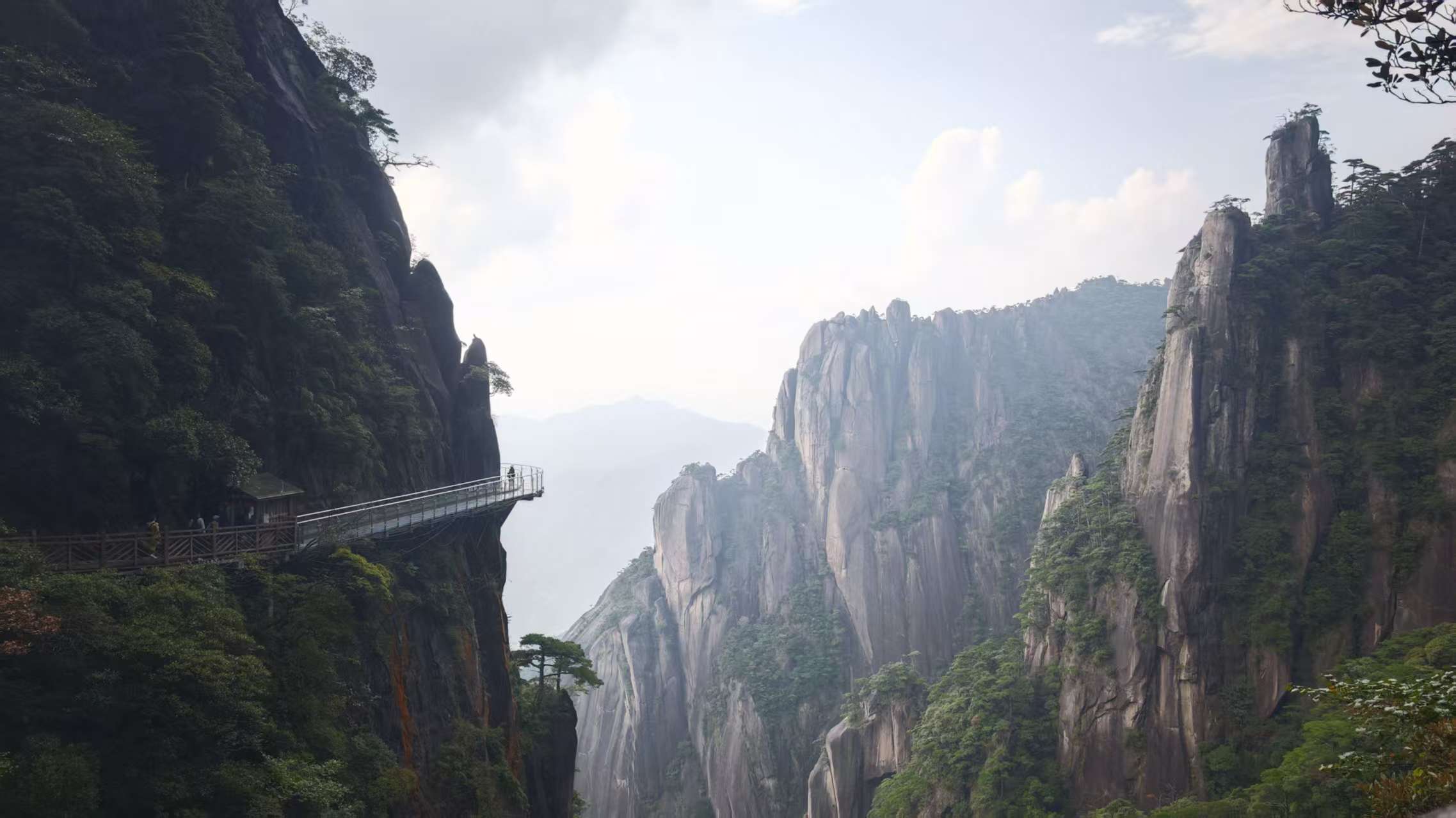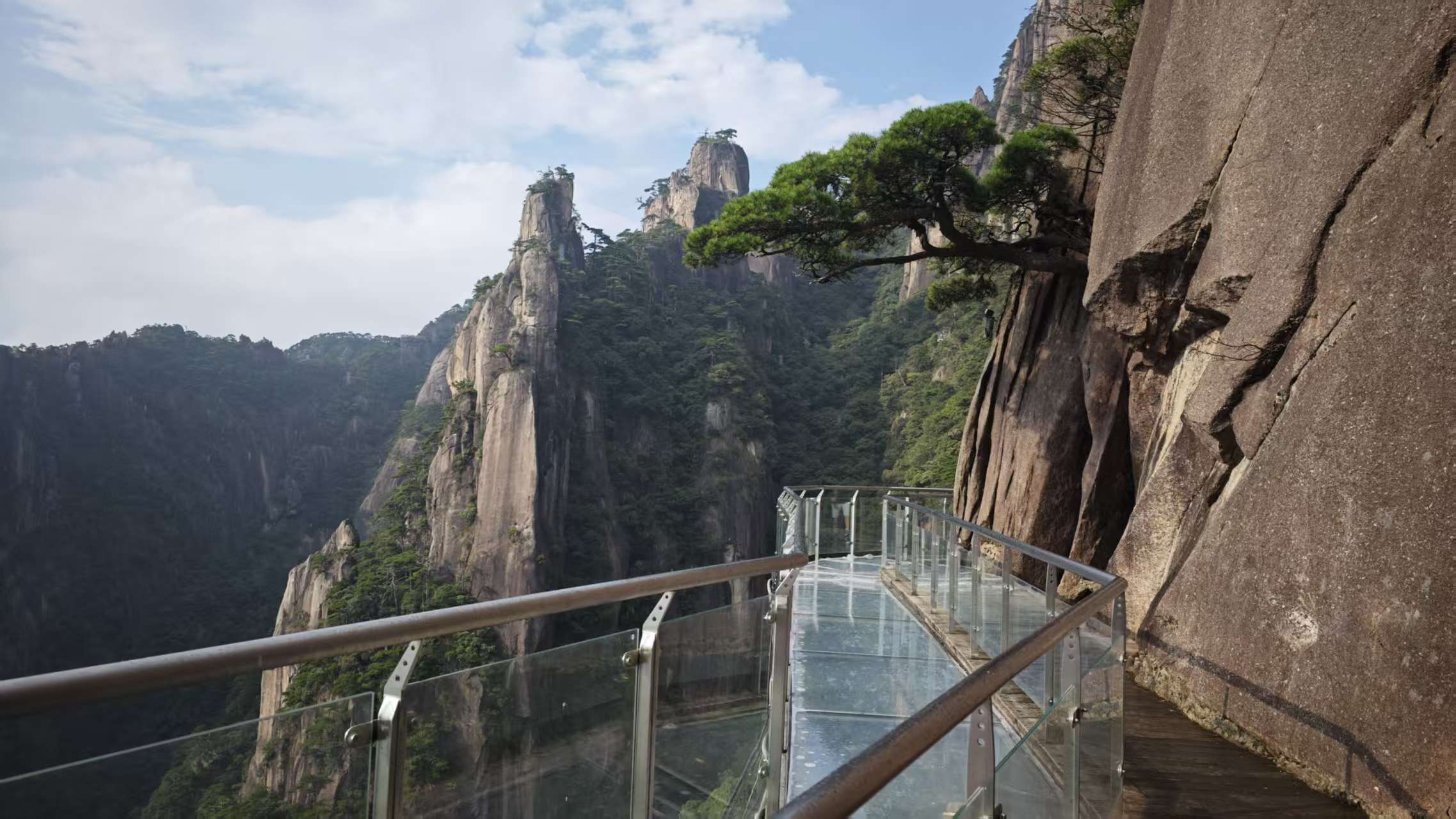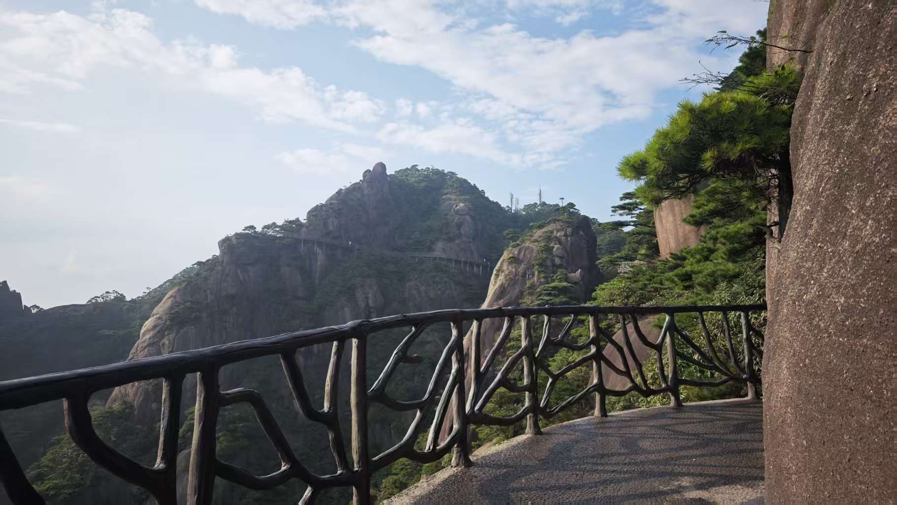 阳光海岸的地势要比西海岸更为开阔,景色多样,可以近距离观赏奇峰异石和松林景观,走在悬崖栈道上能切身感受到「三清天下秀,奇峰立云端」并非是虚言
