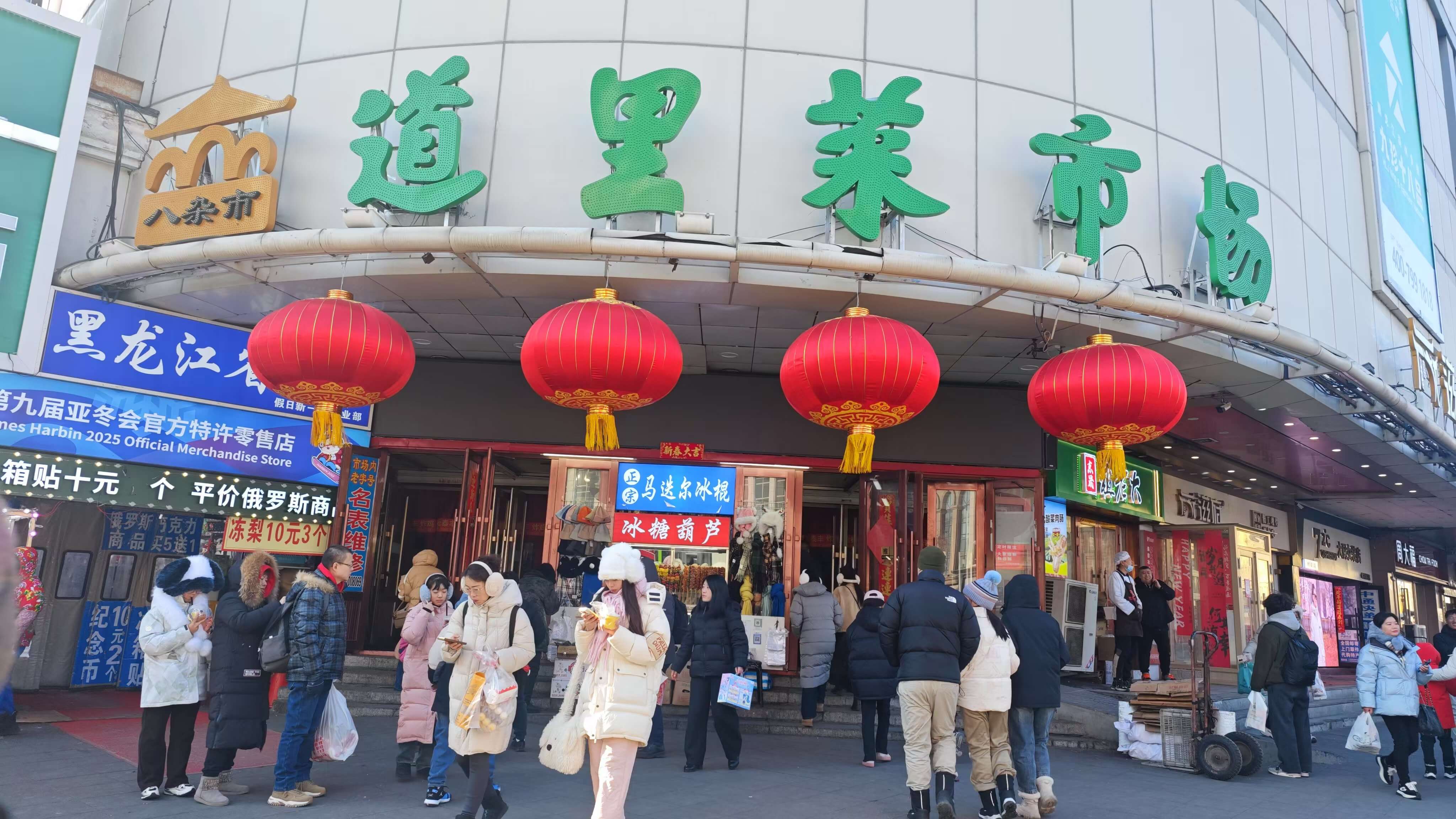 道里菜市场是哈尔滨最具代表性的美食与文化地标之一,始建于1902年,最初名为八杂市,历经多次改建后发展为现代化综合性副食品商场,总面积约1.3万平方米,经营品种超7000种,涵盖生鲜、熟食、特产等,有一些经典老字号,充满市井烟火气,小吃特别多,随便转上一圈,挑自己想吃的稍微买点,就能吃撑了出去。冻梨汁、格瓦斯推荐喝,红肠、炸鱼、烤串也可以尝尝,价格始终,气氛到位
