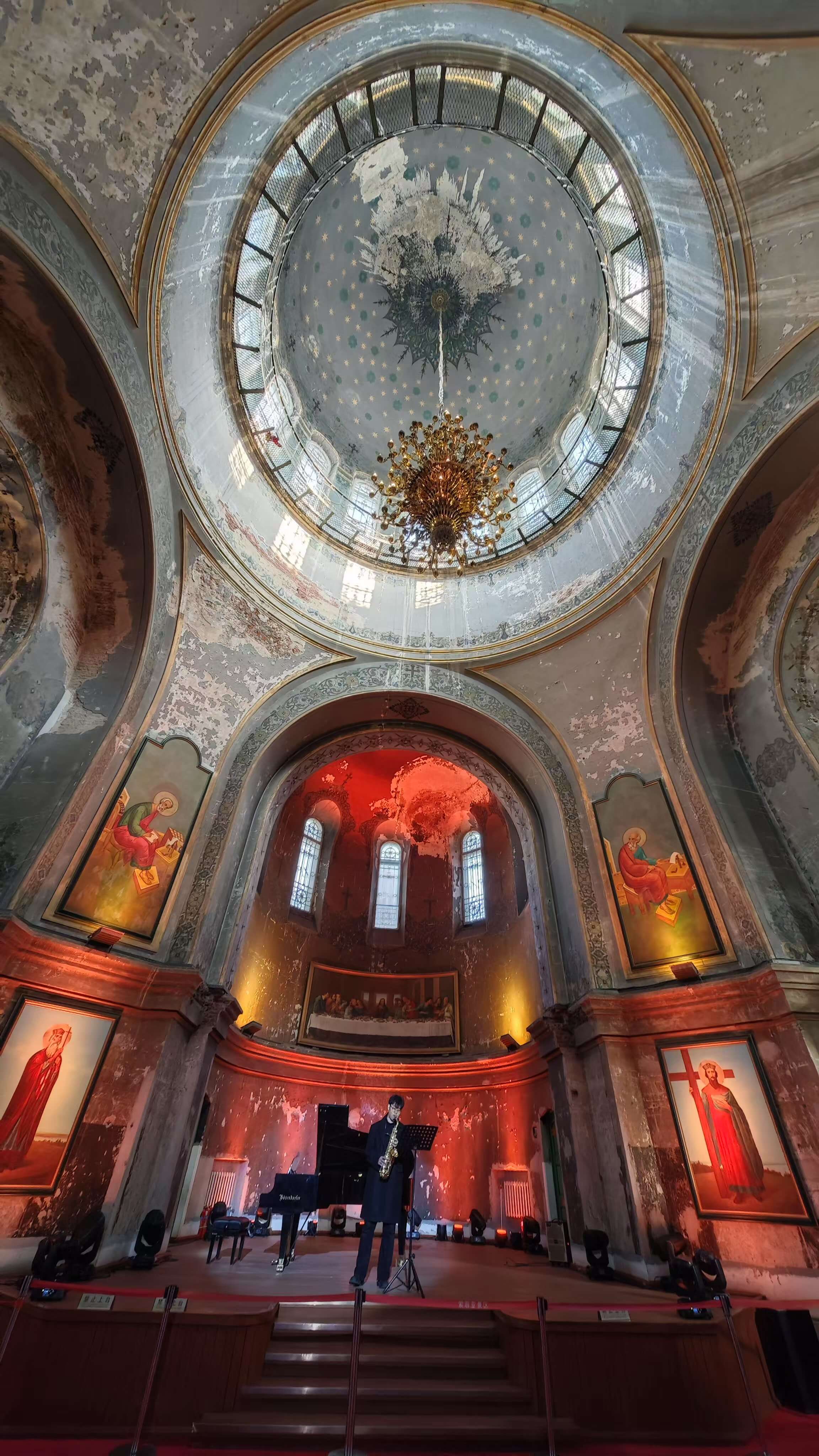 圣索菲亚大教堂除了可以在外边拍照外,还能进去参观,门票20/人,人不多我们就进去参观下,进去之后发现内部空间并没有外边看着的那么大,教堂内除了墙壁上的壁画,以及挂着的哈尔滨老照片展览外,就是中央舞台上的演奏,没有其他可以观看的内容了,所以如果人多也可以不用进去参观,外边拍照就够了