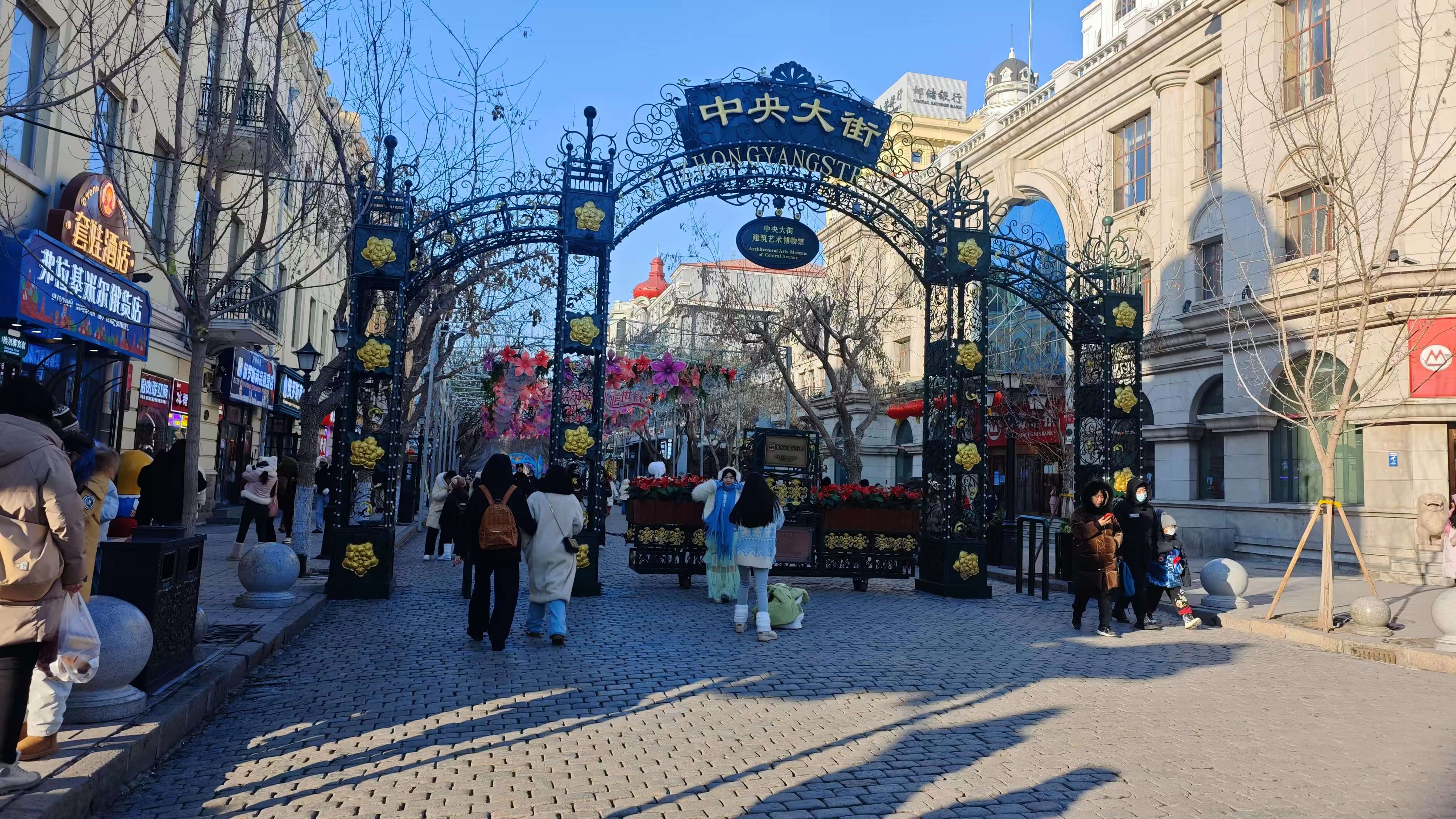 从圣索菲亚大教堂出来,走路10分钟左右就到了中央大街,中央大街是哈尔滨最具代表性的百年历史名街,始建于1898年中东铁路修建时期,最初为运送铁路器材的土道,后发展为商业街,1928年更名为中央大街。这条全长1450米的步行街以独特的欧陆风情闻名,汇聚了文艺复兴、巴洛克、折衷主义等西方建筑史上最具影响力的71栋欧式建筑,被誉为露天的建筑艺术博物馆。中央大街是哈尔滨最早形成的商业街,其发展几乎与城市同步,中东铁路的修建催生了哈尔滨的现代城市框架,而中央大街作为铁路工人、商贾和移民的聚集地,迅速成为城市的经济与文化核心,民间将中央大街视为哈尔滨从无到有的起点,所以也有先有中央大街后有哈尔滨说法