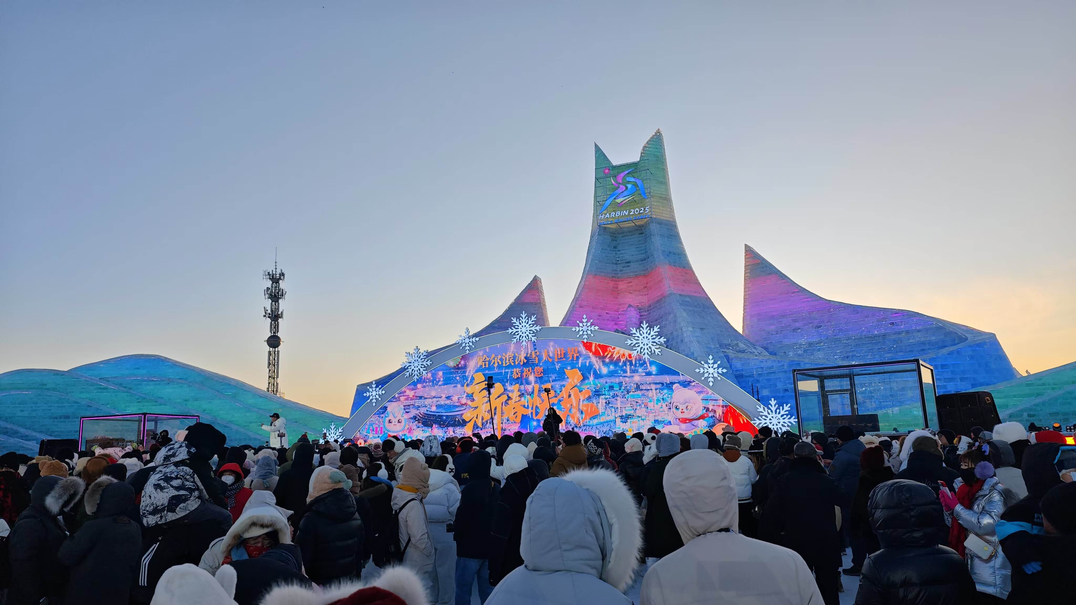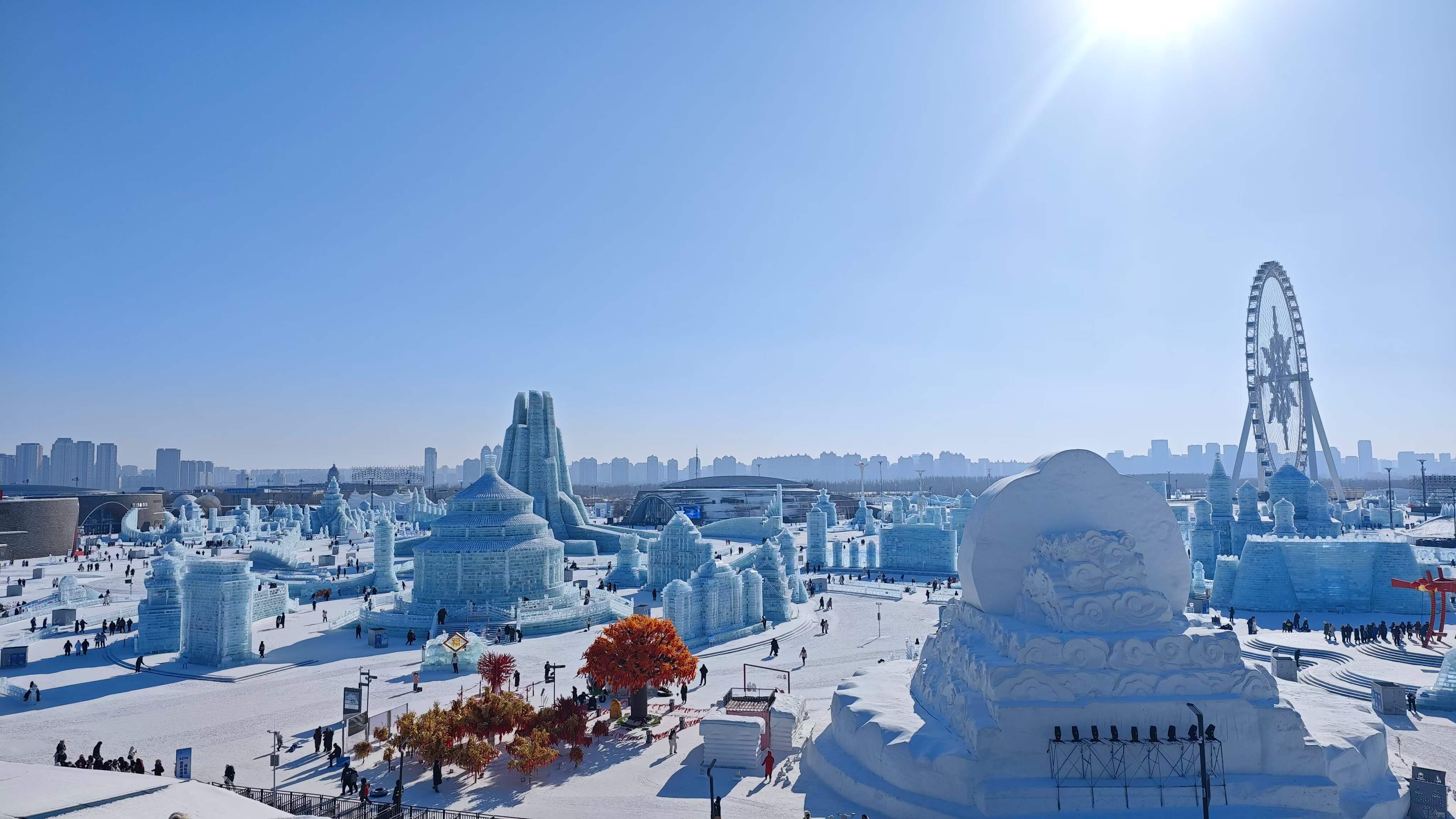 哈尔滨冰雪大世界是世界上最大的冰雪主题乐园,以其壮观的冰雕、璀璨的灯光和丰富的冰雪活动闻名于世,始创于1999年,是为迎接千年庆典而推出的大型冰雪艺术工程。2025年,第二十六届冰雪大世界以“冰雪同梦-亚洲同心”为主题盛大开幕,园区占地100万平方米,用冰用雪量达30万立方米,是亚洲最大的冰雪主题乐园。冰雪大世界的营业时间为11:00至22:00,我们十一点入园也算是比较早的一批了,过了旺季,园区里人不是很多