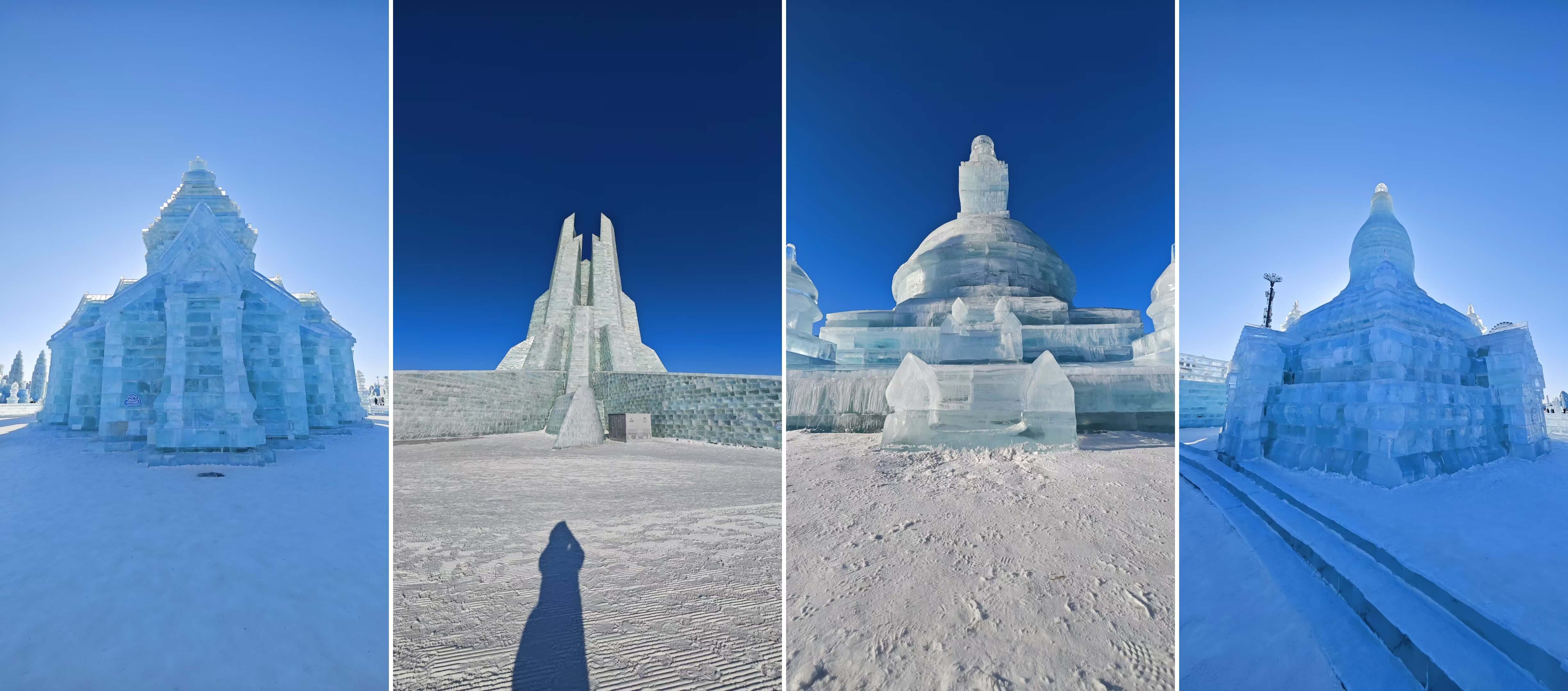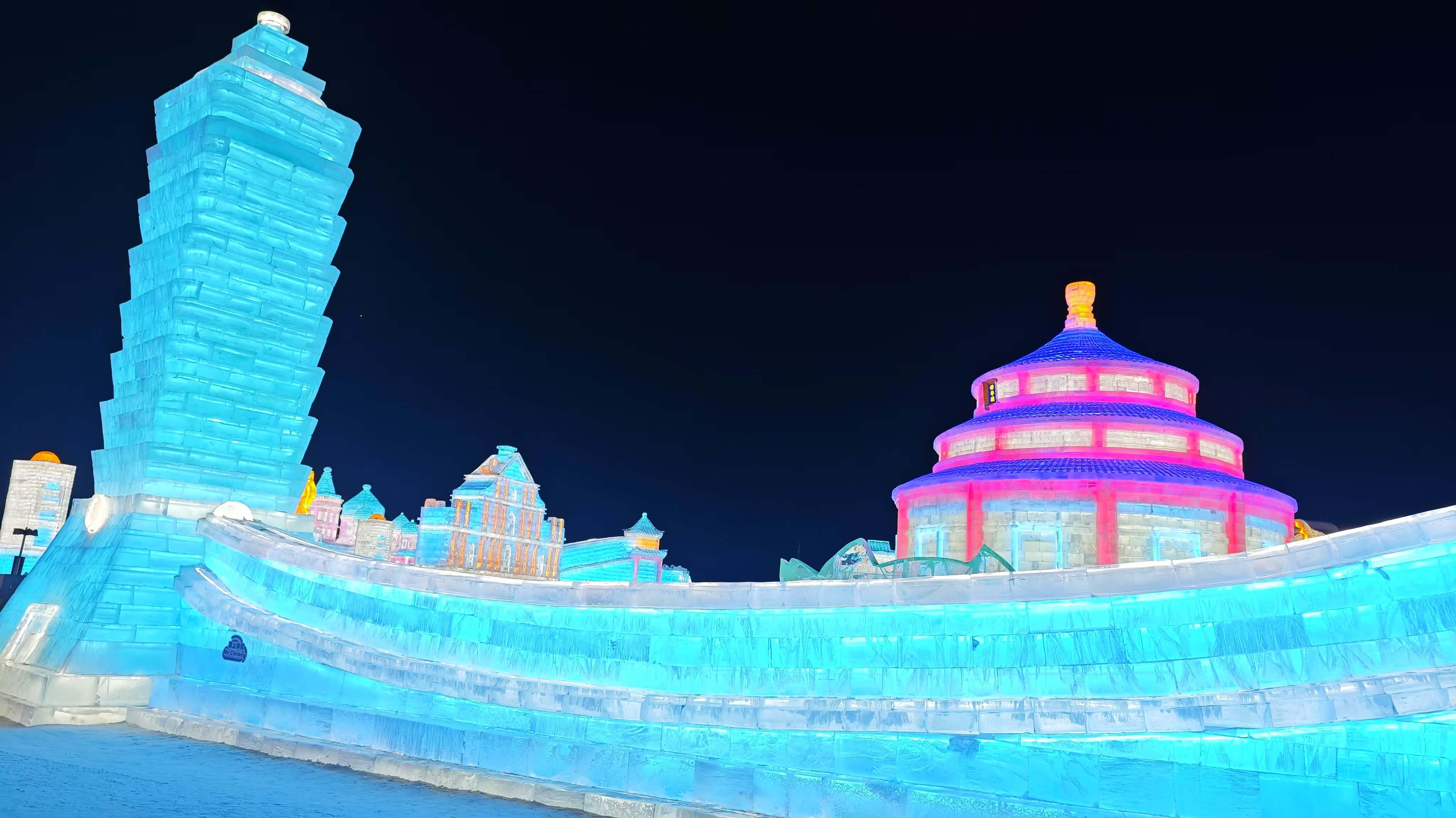 冰雪大世界最主要的内容是冰雕,来到冰雪大世界除了玩儿一些冰雪娱乐项目外,欣赏冰雕也是不可忽略的。第九届亚洲冬季运动会正好今年在哈尔滨举办,所以本届冰雪大世界以亚奥理事会42个成员国家和地区的标志性景观为灵感,打造了历届规模最大的冰建群,园区分为九大分区,包括冰雪同梦区、亚洲同心区、东亚区、中亚区等,还原了天坛、吴哥古迹、卢塞尔体育场等标志性建筑,每一件冰雕作品都由冰雕师精雕细琢,展现哈尔滨乃至全国冰雕艺术的精华