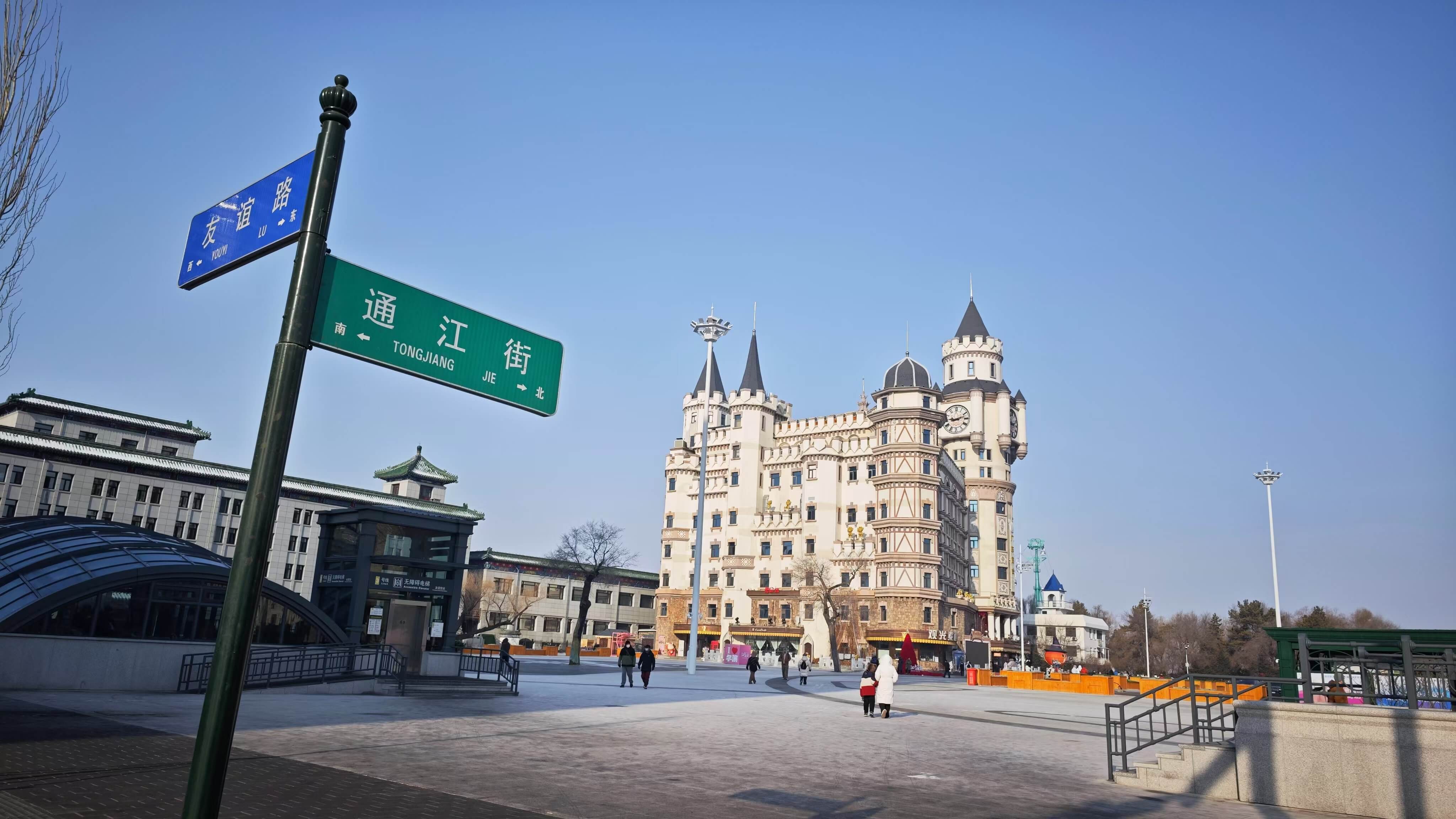 今日的行程主要是去参观侵华日军第七三一部队罪证陈列馆,在三天前机房到市区的大巴上就已经提前预约了,预约了今天的下午场,上午的时间决定去中华巴洛克历史文化街区逛逛,酒店距离中华巴洛克大概1.5公里,不是很远,于是决定走路过去了,走路挺好,可以近距离的感受下这个城市,看到路边有卖冻梨冻柿子的,买上两个,又在一家街边的一家麻辣面馆吃了麻辣面、东北水饺,还和到了这种叫大白梨的饮料,大白梨是一种具有浓郁地方特色的碳酸饮料,这一瓶2块钱,味道还不错,以至于在后边几天吃饭时但凡想喝饮料就会优先选择大白梨