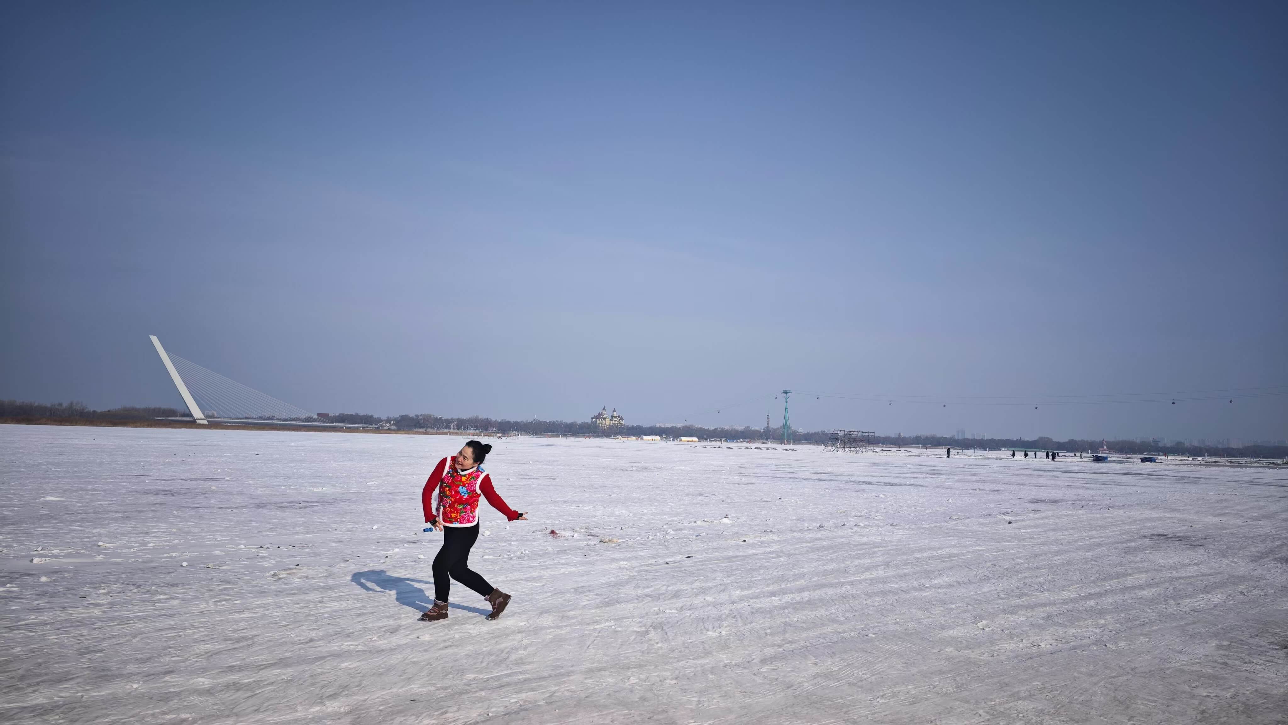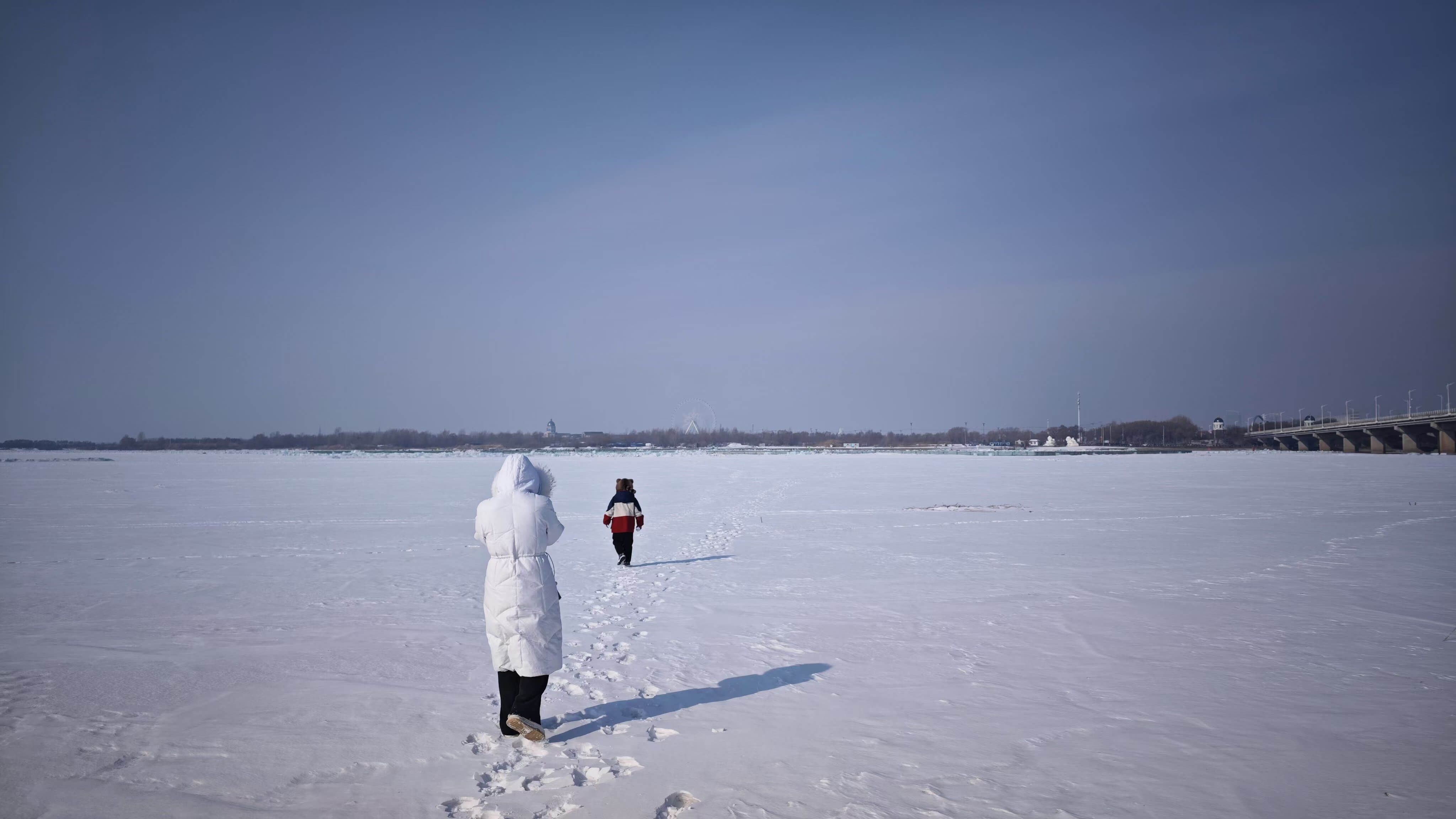 松花江是黑龙江的最大支流,其干流由西向东贯穿哈尔滨地区中部,将哈尔滨分为江南和江北两个部分,为城市提供了丰富的水资源和独特的地理景观。走在江边才算真的找到了旅行的节奏,江边有居民在悠闲的散步,有歌者在纵情的练习,宽阔的江面完全被冰雪覆盖,因为不是游乐场,所以也没有了嘈杂,特别安静,这才是正常的更加生活和日常的松花江