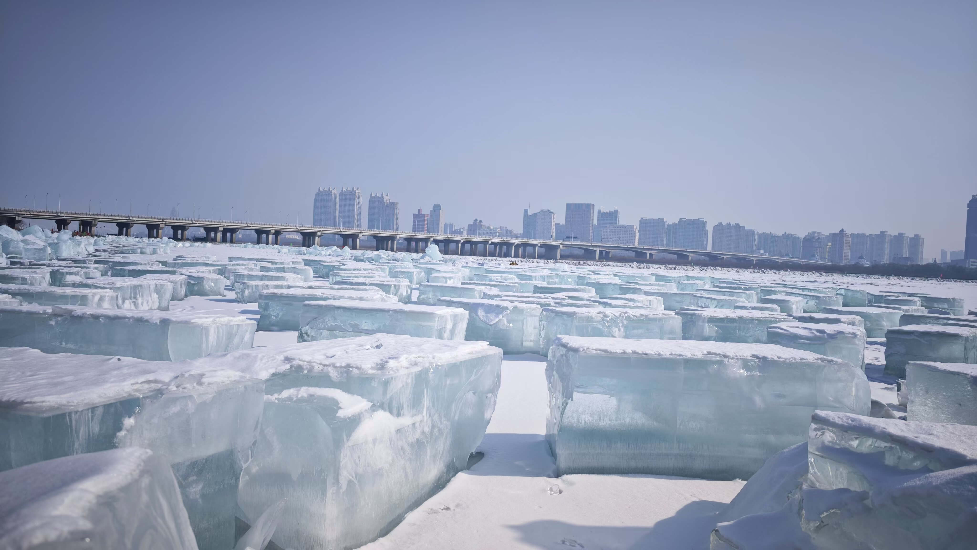 冰雪大世界所用的冰就是采自松花江,采冰作业过程中会有一些破碎的冰块,这些冰块散落在松花江边,晶莹剔透,在阳光照射下,如同钻石般闪耀,于是当地的人们给这取了一个好听的名字—钻石海