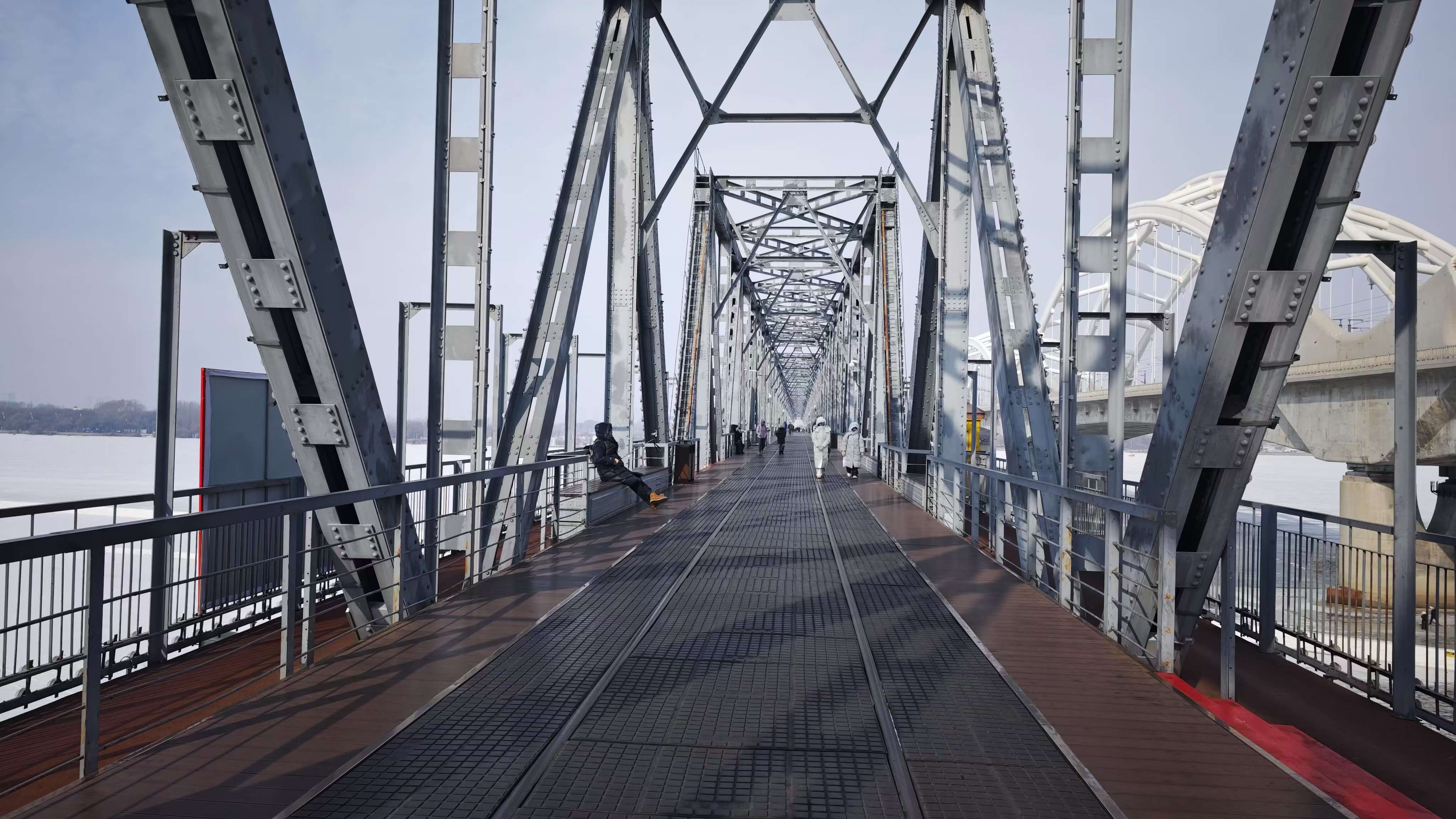 五天的行程很快就到了最后一天了,想吃的美食,还有东北酱大骨,想看的风景,还有中东铁路桥,不想留遗憾,早上起来先去附近饭店吃了根酱大骨,太早厨师可能不在状态,做的酱大骨味道一般,吃完步行去中东铁路桥,也只有一公里多的距离。哈尔滨被誉为火车拉来的城市,就与这条中东铁路有着密不可分的关系,在中东铁路修建前,哈尔滨只是松花江畔的一个小渔村,人口稀少,以渔业和农耕为主,随着中东铁路开工建设,以铁路建设为核心,相关的基础设施、配套产业等逐步发展起来,哈尔滨开始从一个小渔村向城市转变,奠定了城市发展的基础。我们沿着中东铁路公园一直走到了中东铁路印象馆