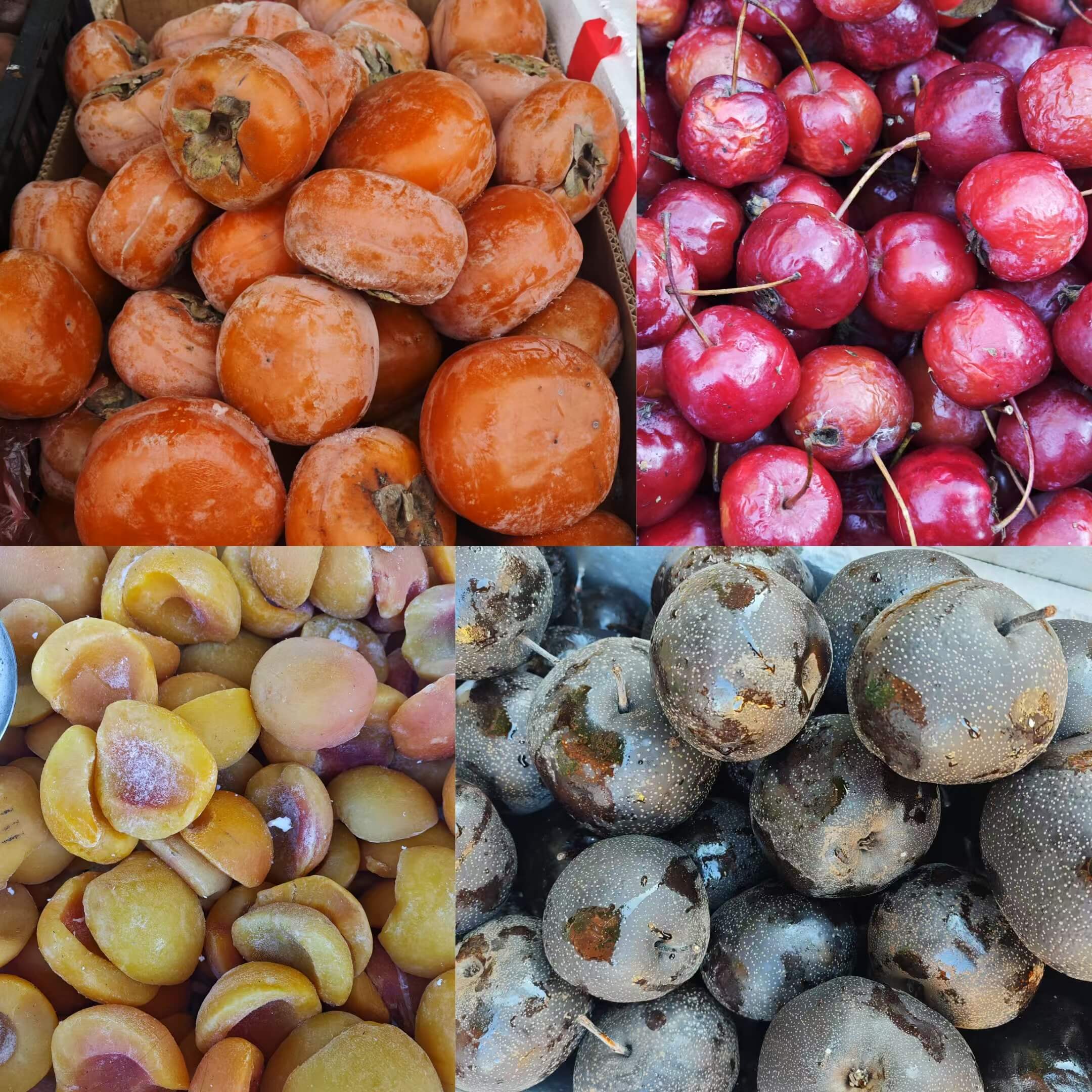 吃完饭出来,天空开始飘下雪花,没想到临走了哈尔滨还送我们看场雪,前几天吃了东北的冻货,东北有超多的冻货,冻梨冻柿子冻冻黄桃冻花红等等,没有被冻梨惊艳,反倒是觉得冻柿子特别的好吃,甜甜的沙沙的口感,像是在吃冰淇凌,要比冰淇淋健康好吃的多,所以在临走前,专门买了冻柿子带着,3块钱一斤的价格,超划算