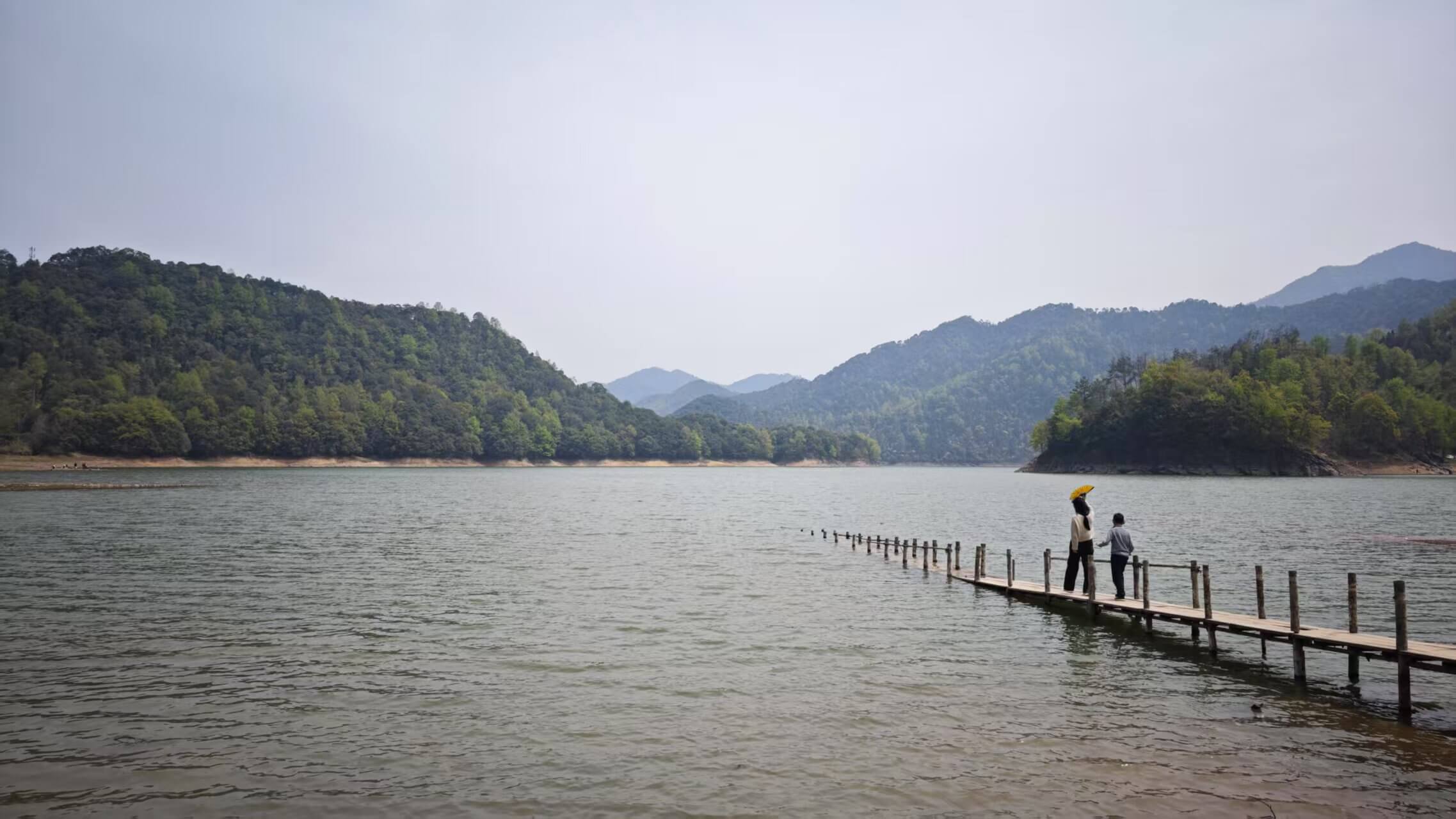 除了俯瞰之外,还有些地方能下到湖边,在湖边散步,与湖水亲密接触,其中最好的地点在田芯村,国道边就有个路口可以拐下来,这里环境优美,还是电影长津湖的取景地,停车方便,车位充足,没有停车费,很不错。建有一座竹桥可以直通湖中间