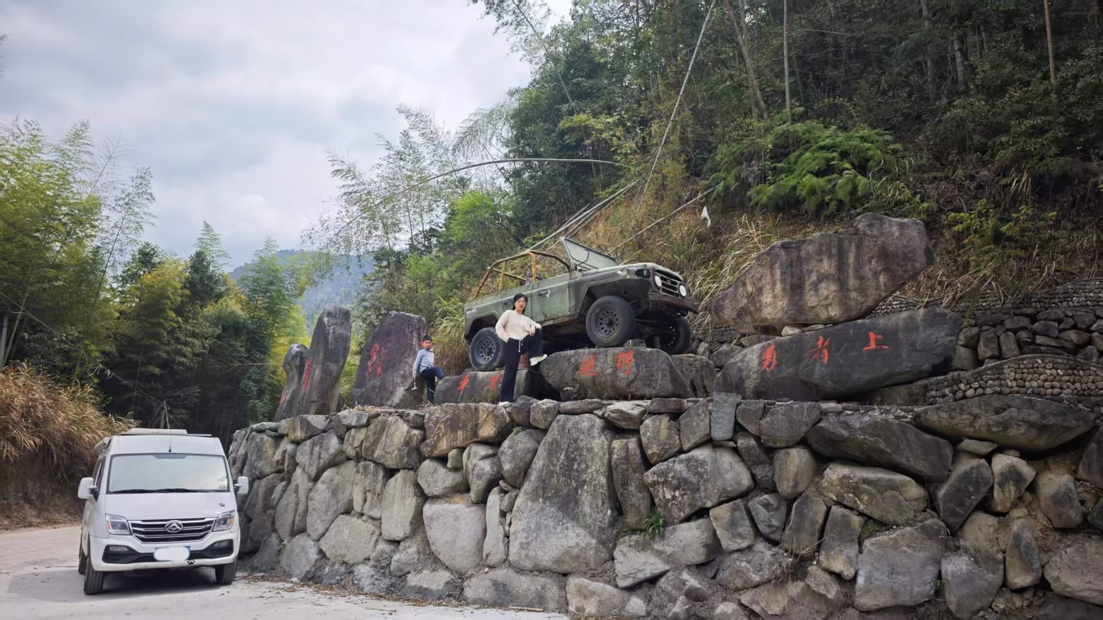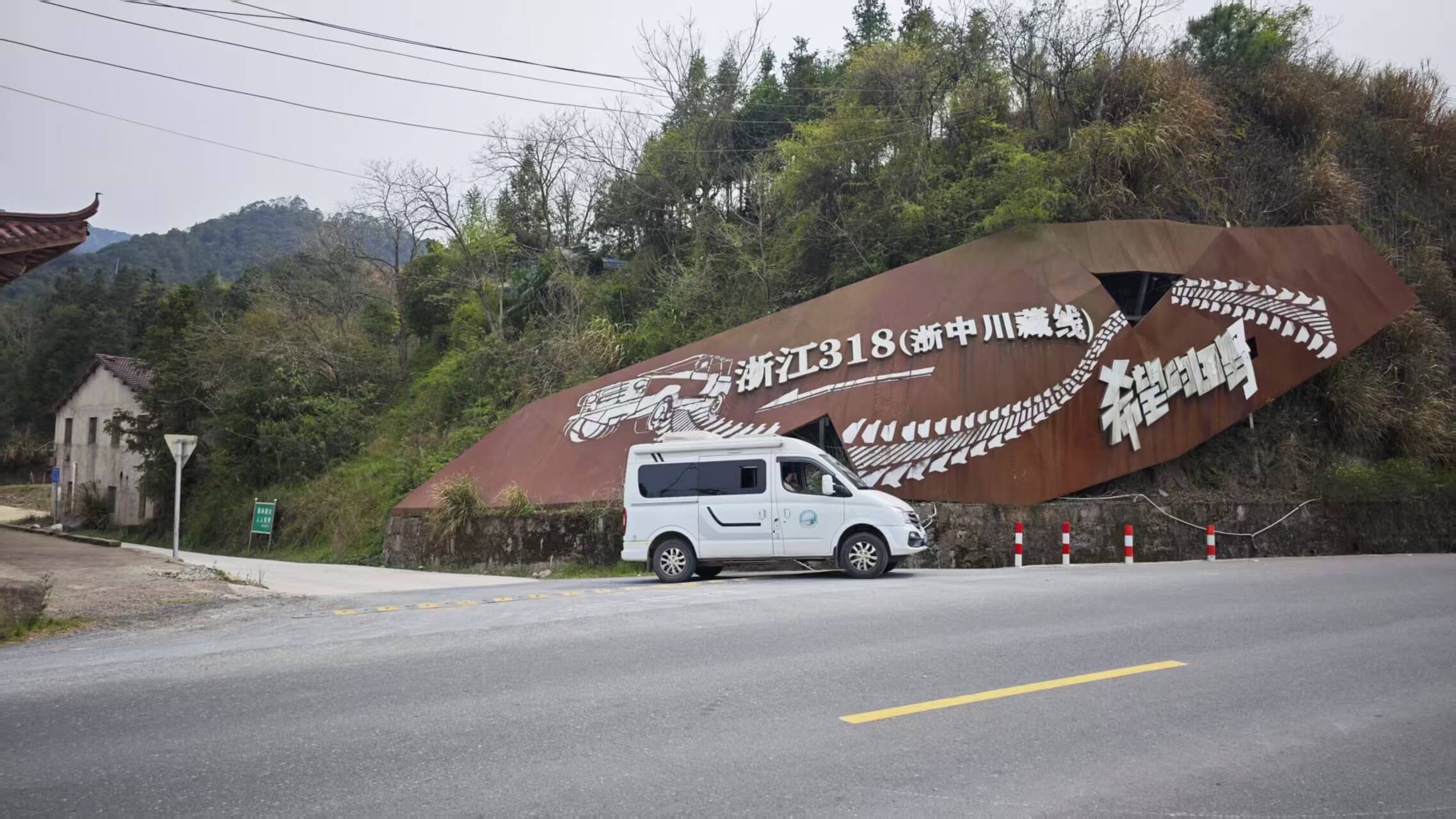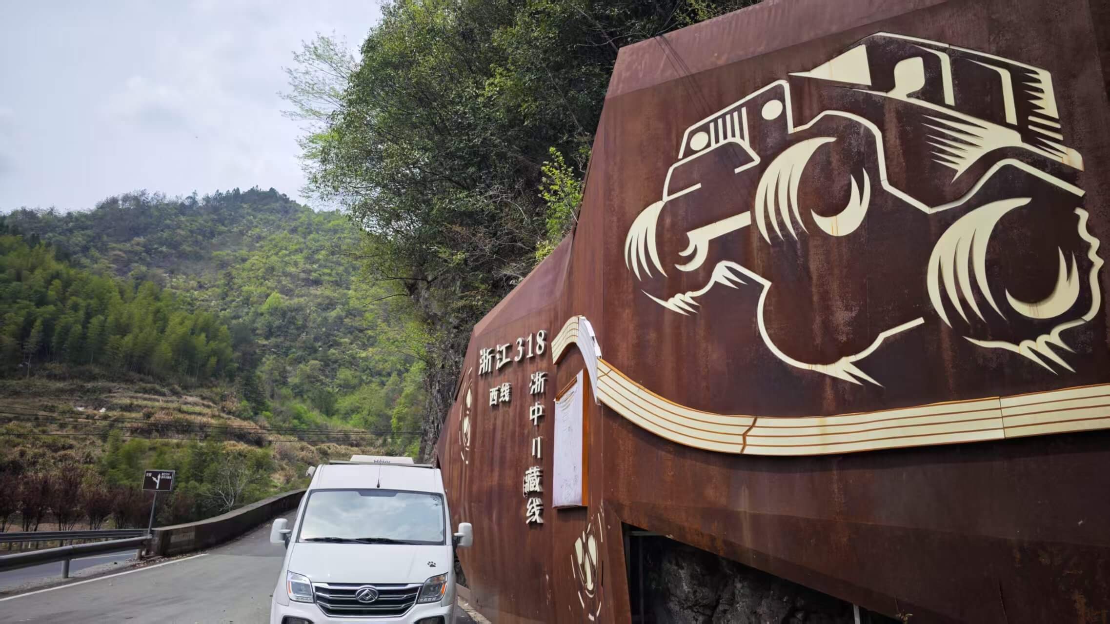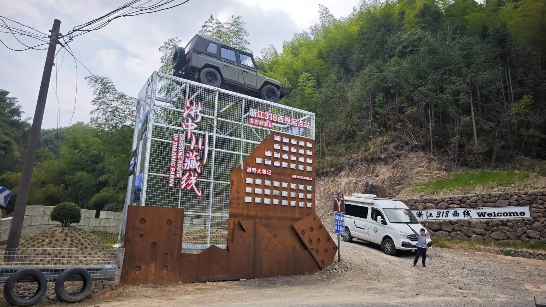 继续往前会经过这个网红打卡地,一个融合了吉普车的建筑,越野味十足,周围的石头上还写着浙江318川藏风车线。我们所走的浙中川藏线都还是比较好走的水泥路,普通的家用车就能走,除此之外浙中川藏线还有几条越野线路,要专业车辆在申请允许后才能走,留给专业玩家了