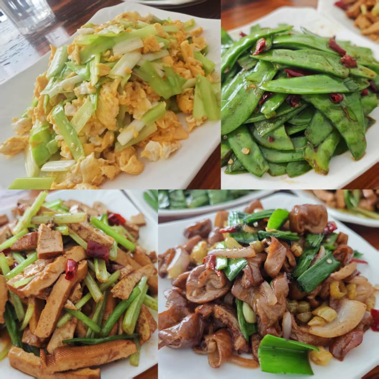 接近六点,天色渐暗,我们也要回家了。看了下导航,回去的路很堵,至少要6个小时,行至大盘镇,又路过了昨天中午吃饭的那家饭店,决定吃完饭再走,开店的是夫妻俩,有一个孩子,大概三四岁的样子,女主人漂亮,男主人实在,之所以说实在,是因为一件小事,坐在门口位置的一个大叔,穿着朴素,看上去很饿,自己一个人点了一个菜,老板在端上菜了之后,给他打米饭,盛米饭的碗比我们的要大不少,并且米饭装的很满,像是用米饭在碗里堆起了一个小山丘,大叔连连说太多了吃不完,老板则笑着说吃饱点。一个小小的动作给了我很大的好感,所以我想帮他们宣传,如果你也到了大盘镇,恰好要吃饭的话,可以考虑下下面这家店