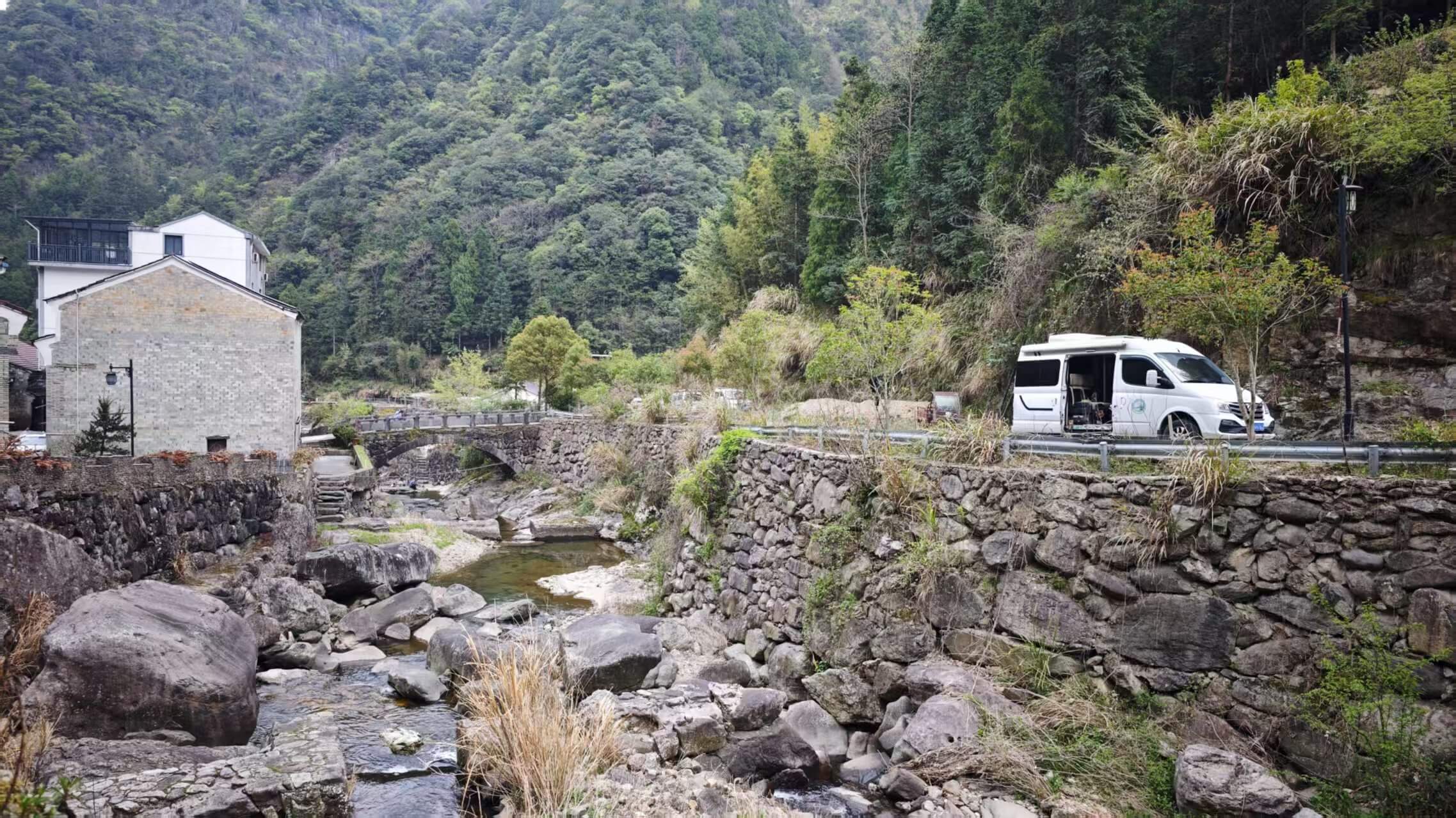 在山间自驾,随时都能与小溪为伴,几乎走的这一路山路旁边都有小溪,如果喜欢玩儿水随时可以停下来,夏天来自驾应该会特别舒服,山里本就要凉快一些,再搭配溪水降温消暑就更棒了。继续往前经过石研村能看到一大片梯田,可惜此时时间不对,梯田里少了些青葱的翠绿或是诱人的金黄