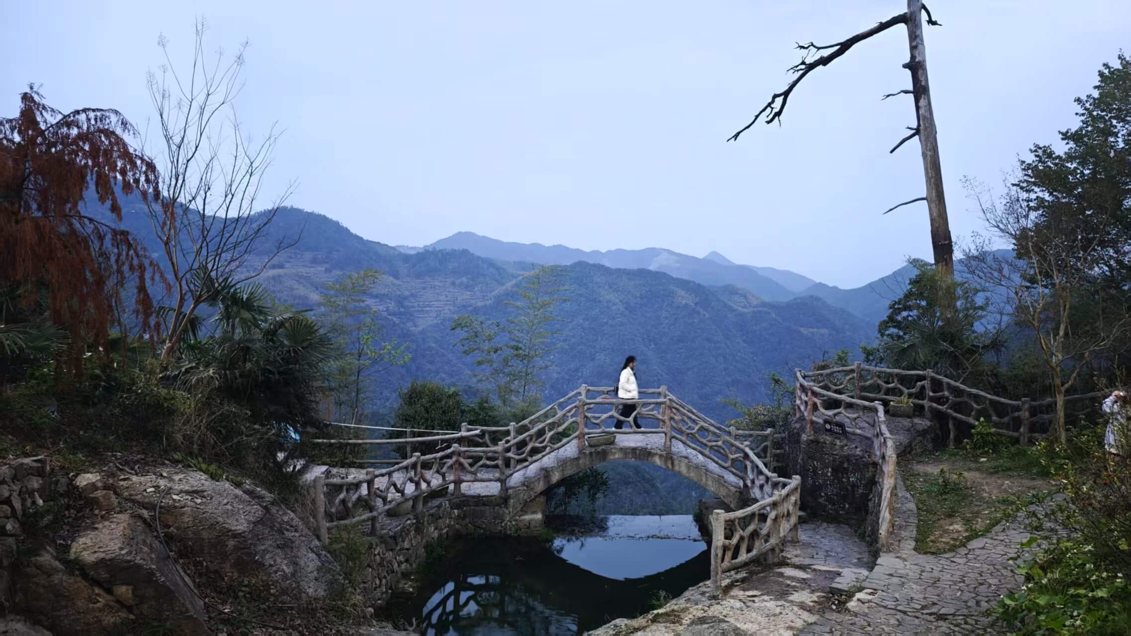 在我们所有去过的村子中,这个村子的位置并不算最险和最难到达的,最险的应该是之前去到的木梨硔村,位于黄山市休宁县,至今仍未通公路,位置要更为险要,也更难到达,当然风景也更好。当然这里景色也不错,最好看的当属村子里的这座桥,旁边就是几百米高的悬崖,溪水从桥下流过倾泻而下,形成了高达几百米的瀑布,走在桥上也是特别刺激,尤其是对于我这种恐高症选手,是一刻也不愿意多呆的