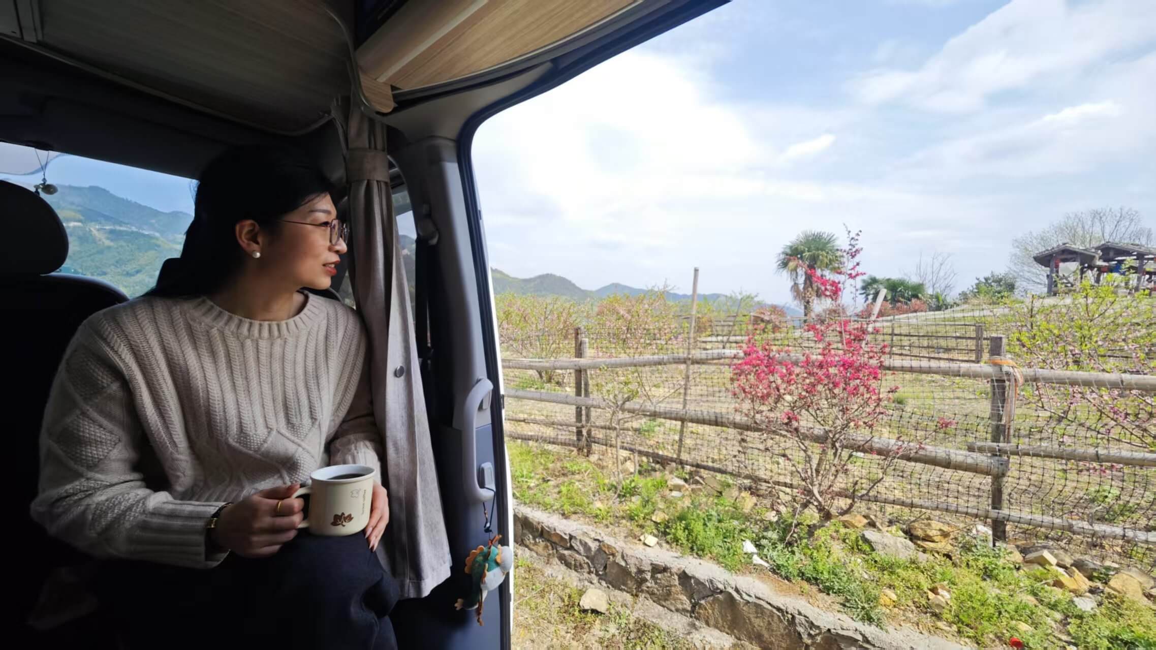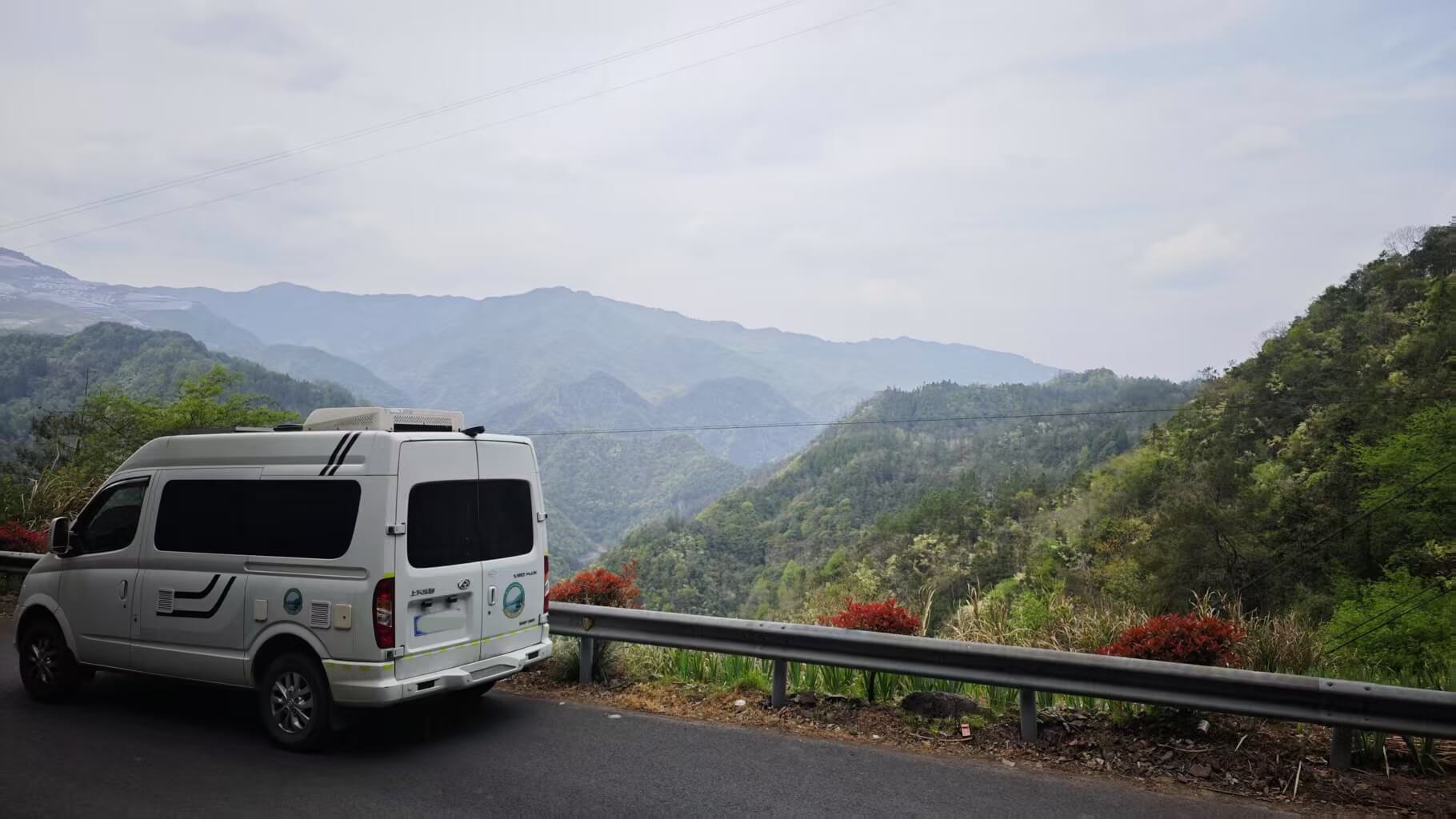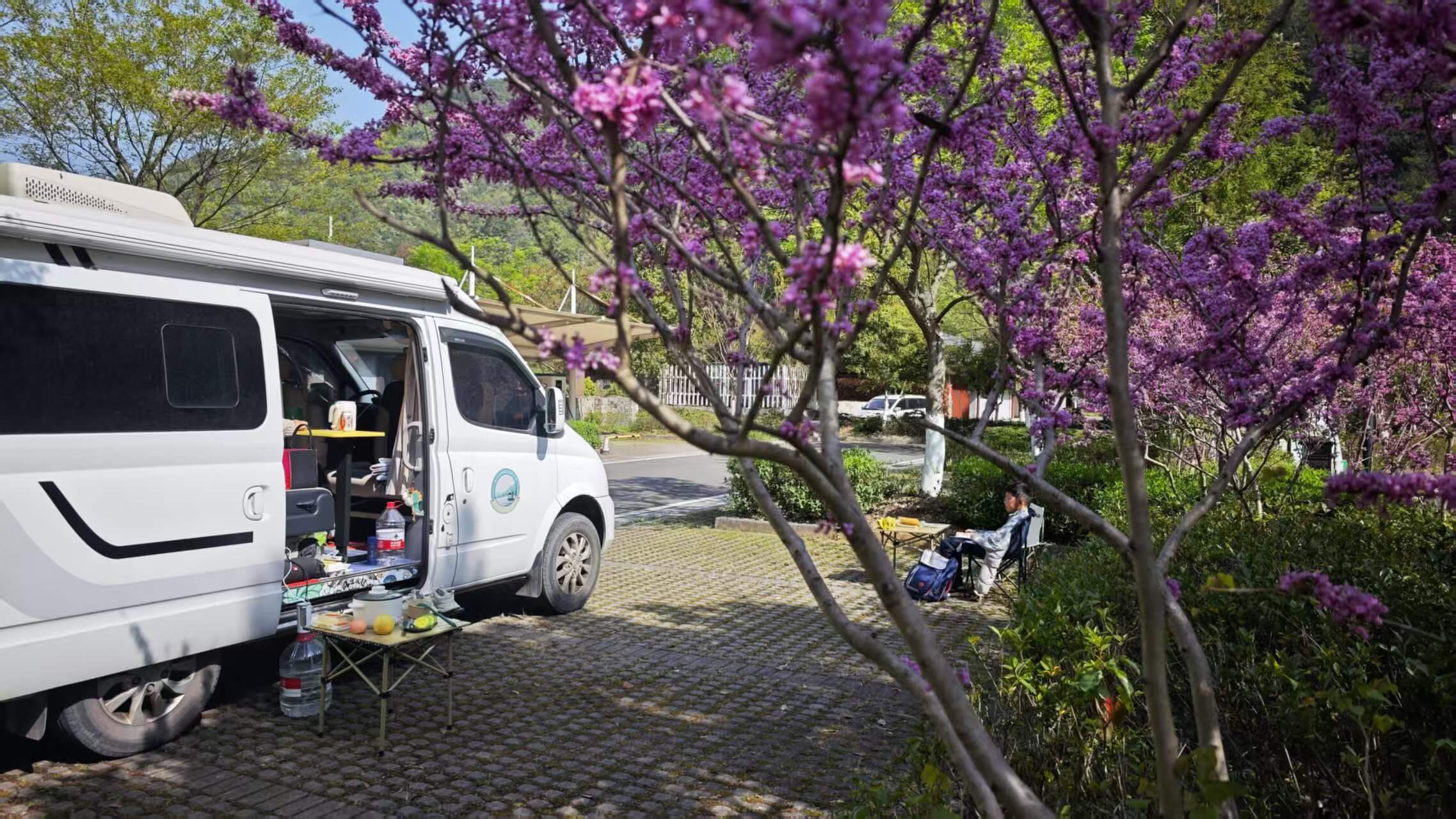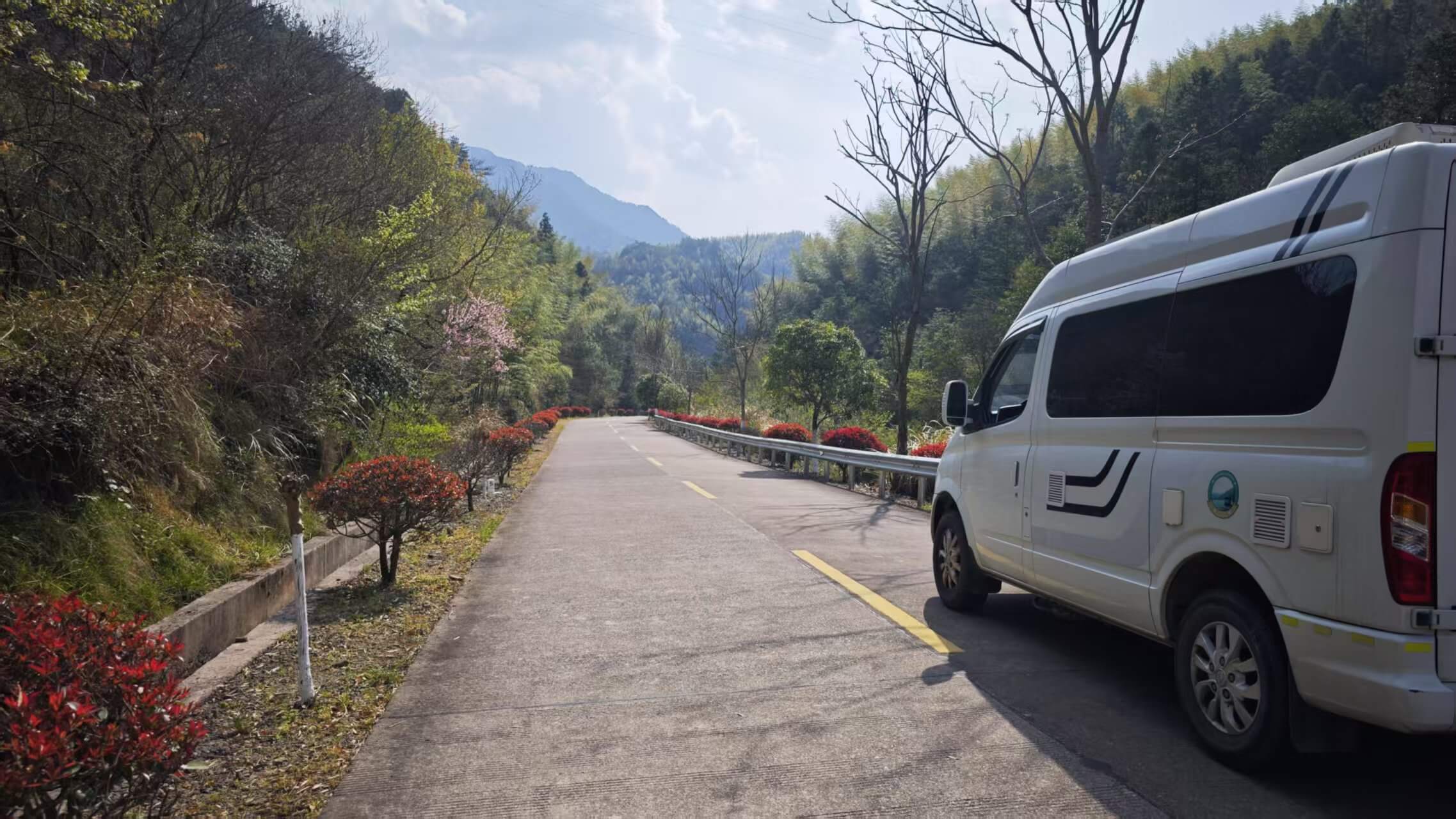 我们洗漱好,给车子加满水,简单的吃了点早饭,继续出发了,路上依然很顺畅,不堵车,车窗外的风景也变成了大片的农田和别致的青山,经过穿岩十九峰,穿过了一个又一个山洞,最终在街头收费站下了高速,下高速不远就走上了323省道,总觉得这段路很熟悉,似曾相识的样子,直到看到路旁的寒山湖,才想起来,确实是走过,去年在台州天台旅行时曾到过这里,这里隶属于台州市天台县,去年没找到的寒山湖边绝佳露营地今天是有机会找到了,国道很好开,旁边的山坡上长满了好看的花