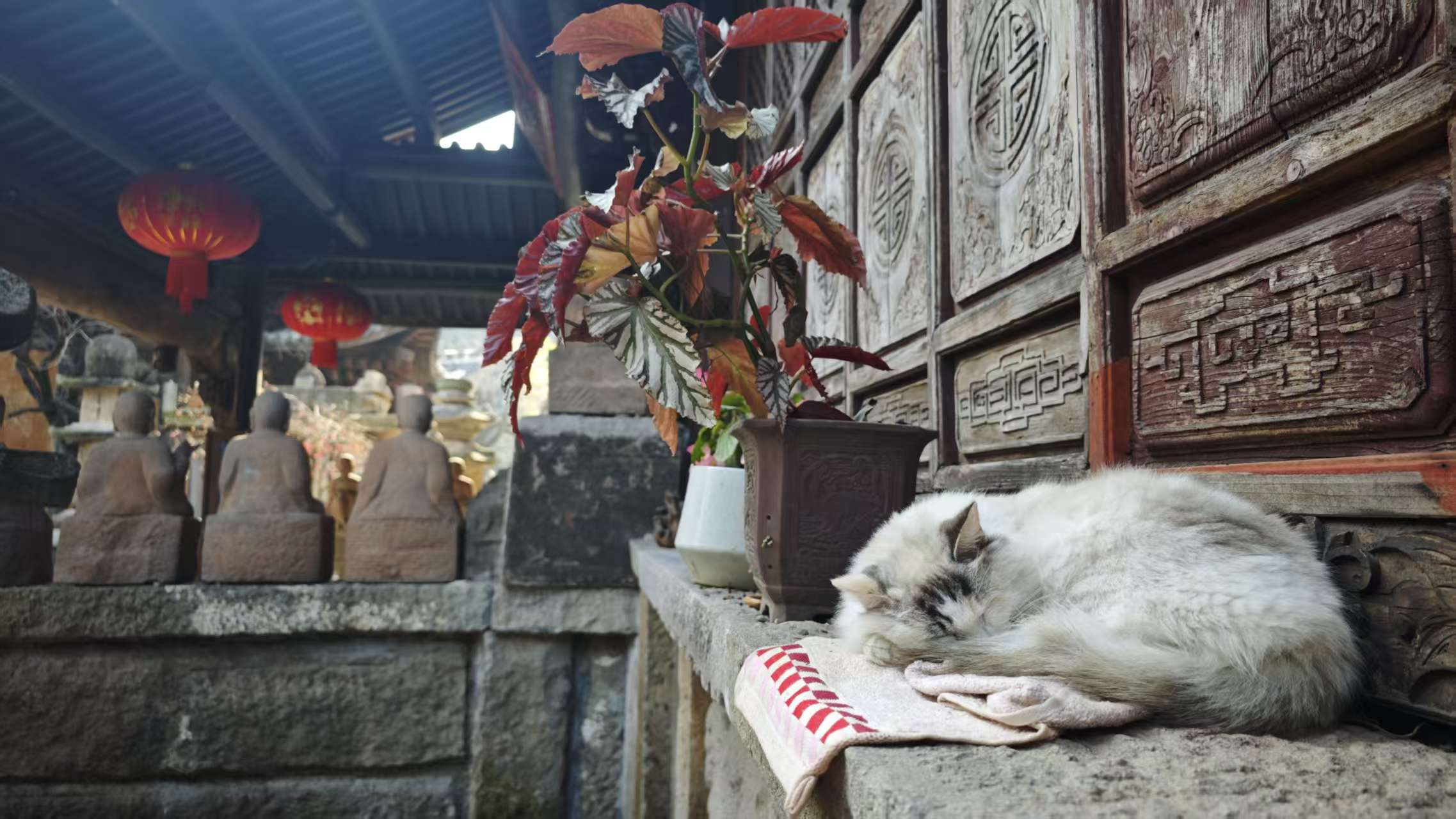 走在村子里时不时的都能遇到在溪流里忙碌洗涤、在自家门前晒太阳以及在祠堂前聚集闲聊的村民,这不是一个商业的景区,而是一个活着的古村,村民世世代代的生活在这里,对我们来说是过来参观,但对他们来说只是日常。我很喜欢这种氛围,不像是在逛景区,而更多的是感觉走在朋友家的村子里,生活且悠闲