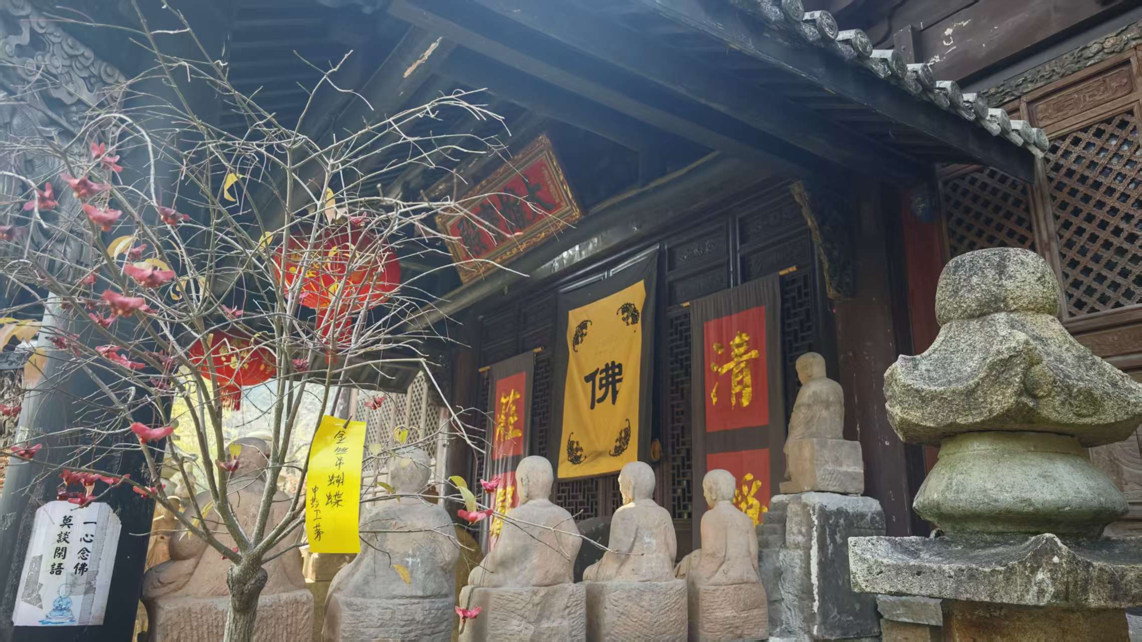 吃完饭去龙潭古寺,这座寺庙我在网上刷到过很多次,甚至说能来浦江它也是功不可没,我是先知道的龙潭古寺,后了解的金华浦江,许多到过龙潭古寺的人,对它的评价都是惊艳和松弛,所以来之前就对这座寺庙充满了好奇。原本以为寺庙会在远离人烟的深山里,但实际上就在浦江县城以北五公里的半山腰,山下就是一个村子,并没有远离人间。走到寺庙门口,那种古朴的感觉扑面而来