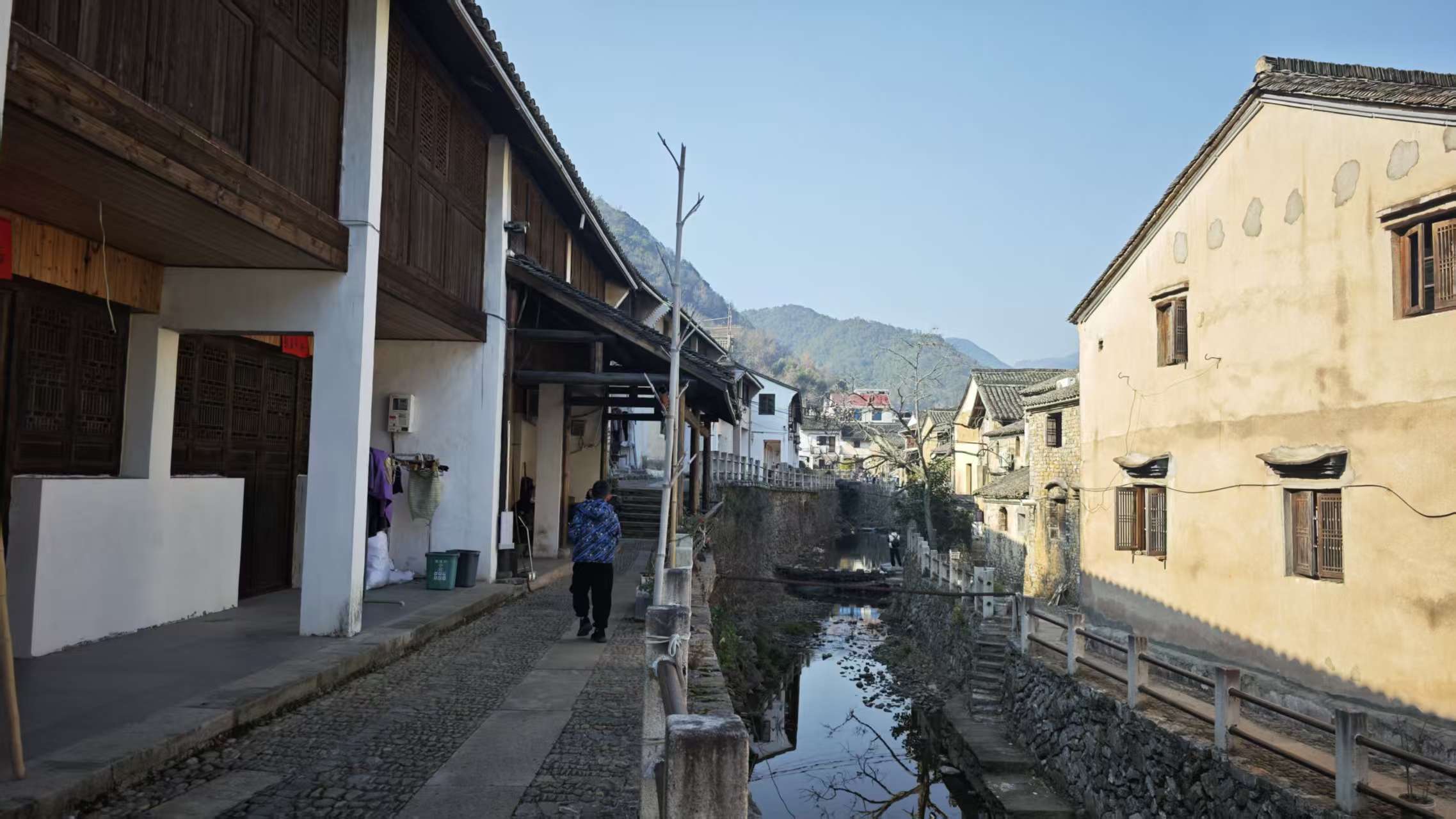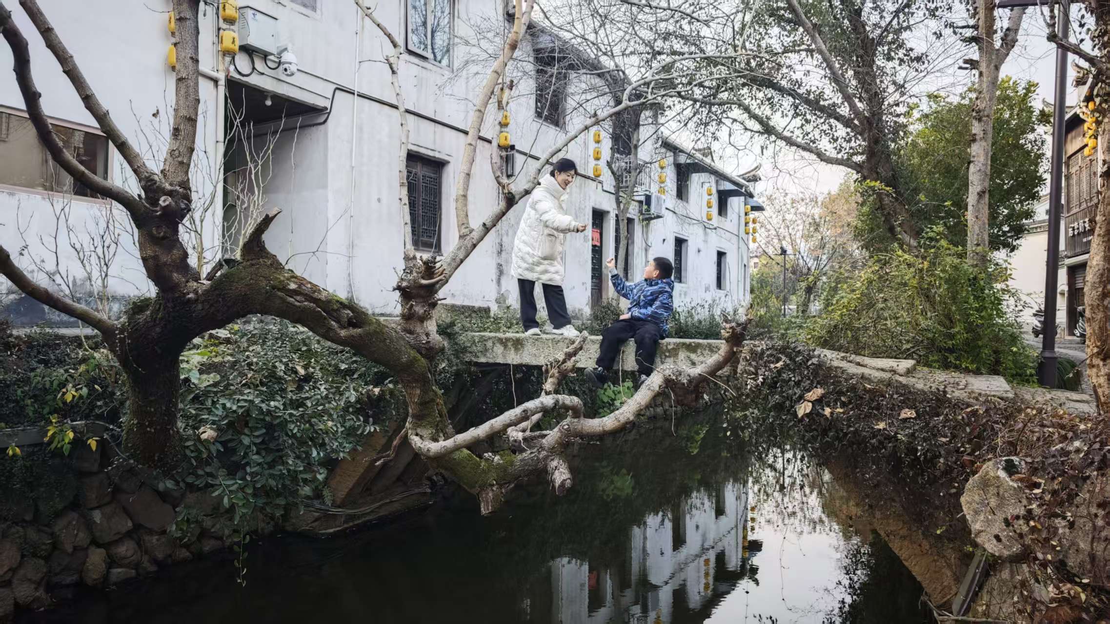 江南第一家景区没有大门票,但里边会有些小景点单独收费,虽然是元旦节假期,但景区内人并不多,溪流两旁的商户大多也都没有开门,安安静静,虽然商户不多,但还有不少老人生活在村子里,随便走走看看,嬉闹拍照,很不错