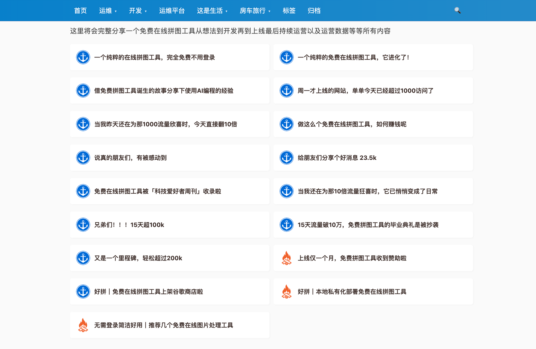 内容相关性: 所有的文章都围绕「拼图」、「图片处理」、「工具开发」这些核心主题展开,极大地增强了网站在这一垂直领域的主题权威性